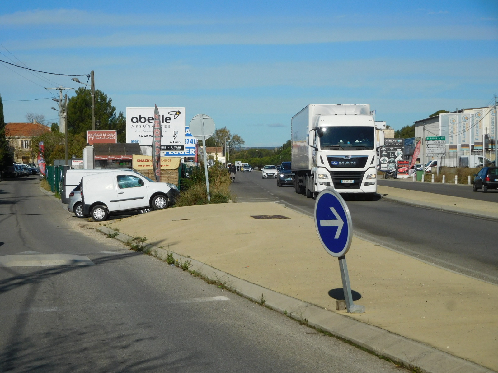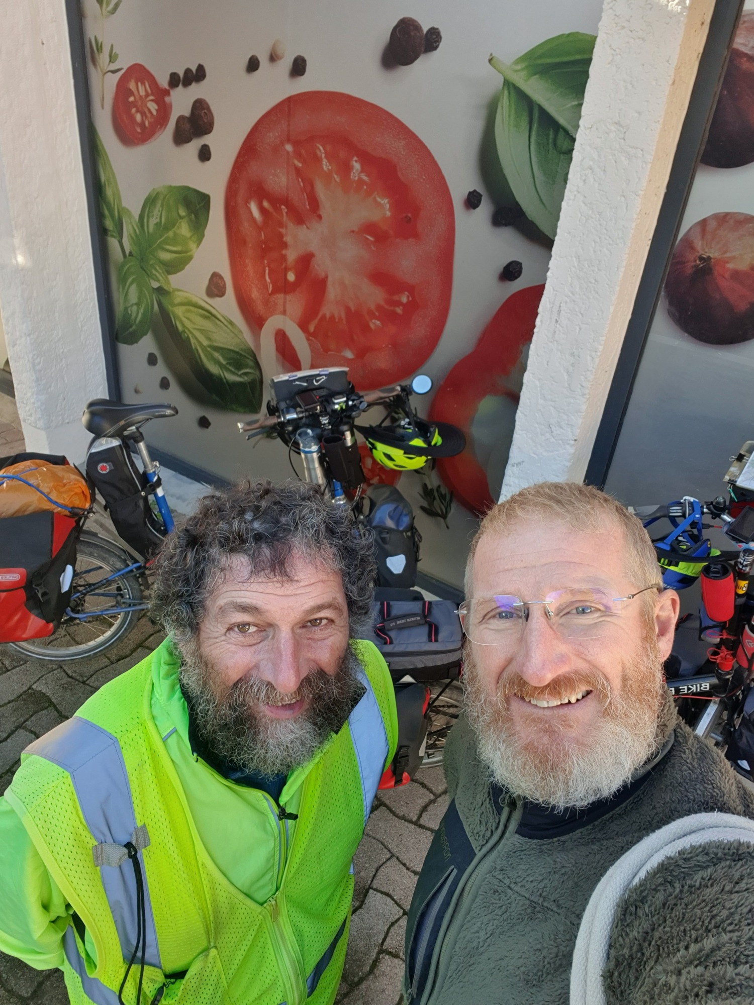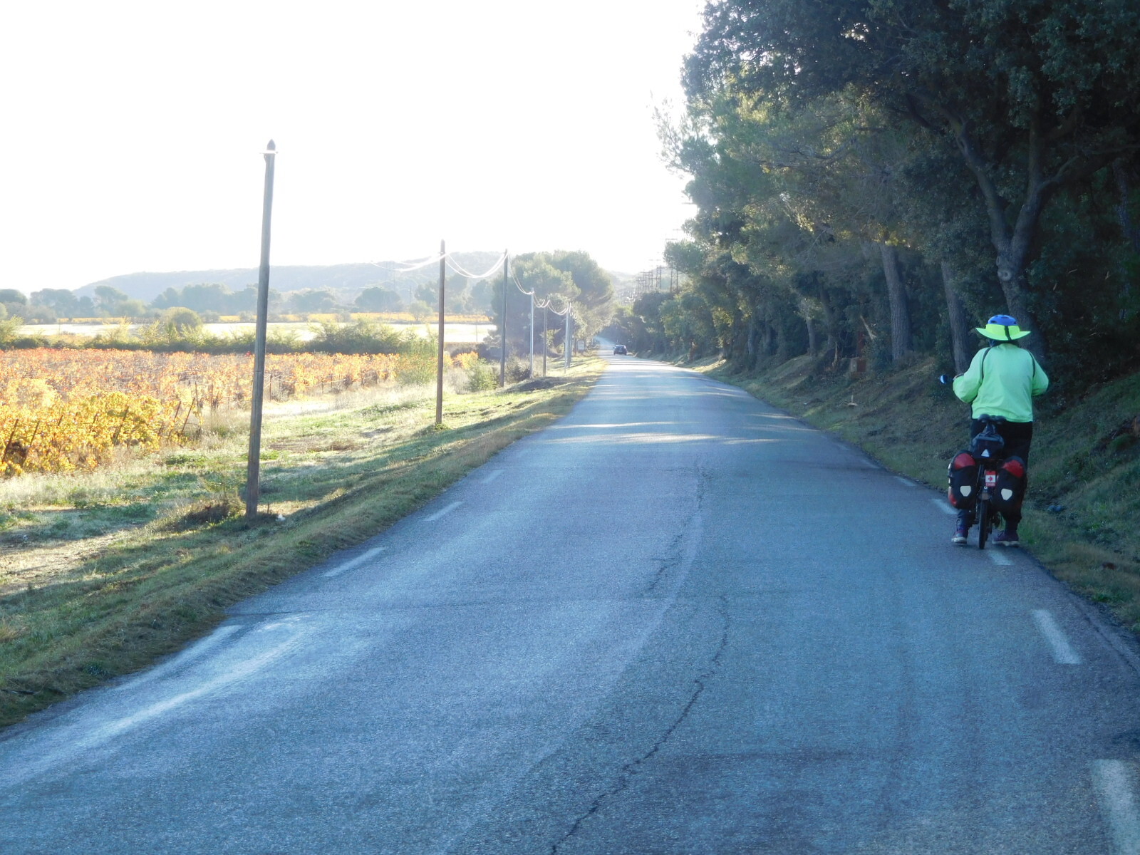 In Velaux we took a break, sending Dodie into an Aldi market while I as usual was left out with the bikes. Usually this becomes the occasion for a French lesson, as someone will approach me with the Usual Questions. This time someone did have questions, but they were addressed in very good English. They came from Vincent, who lives in Velaux, but who has a sister in San Diego. Vincent started out as a mountain biker but has now included road biking. The natural progression for him could be to cycle touring. That was the basis for many of his questions, and hopefully we are on the way to having another Cycleblazer.