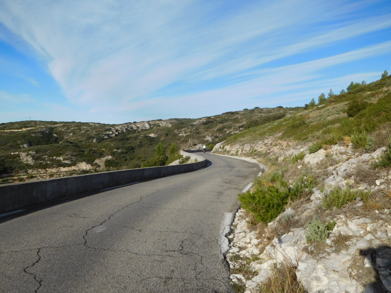 What happened next was that the road took a dive, curving down and down and around steep bends. Drivers responded to this by rocketing up and down, cutting the corners as much as possible. If they came upon two hapless cyclists in the way, they were annoyed. There was some hand waving, to indicate "Why are you in my race track?".