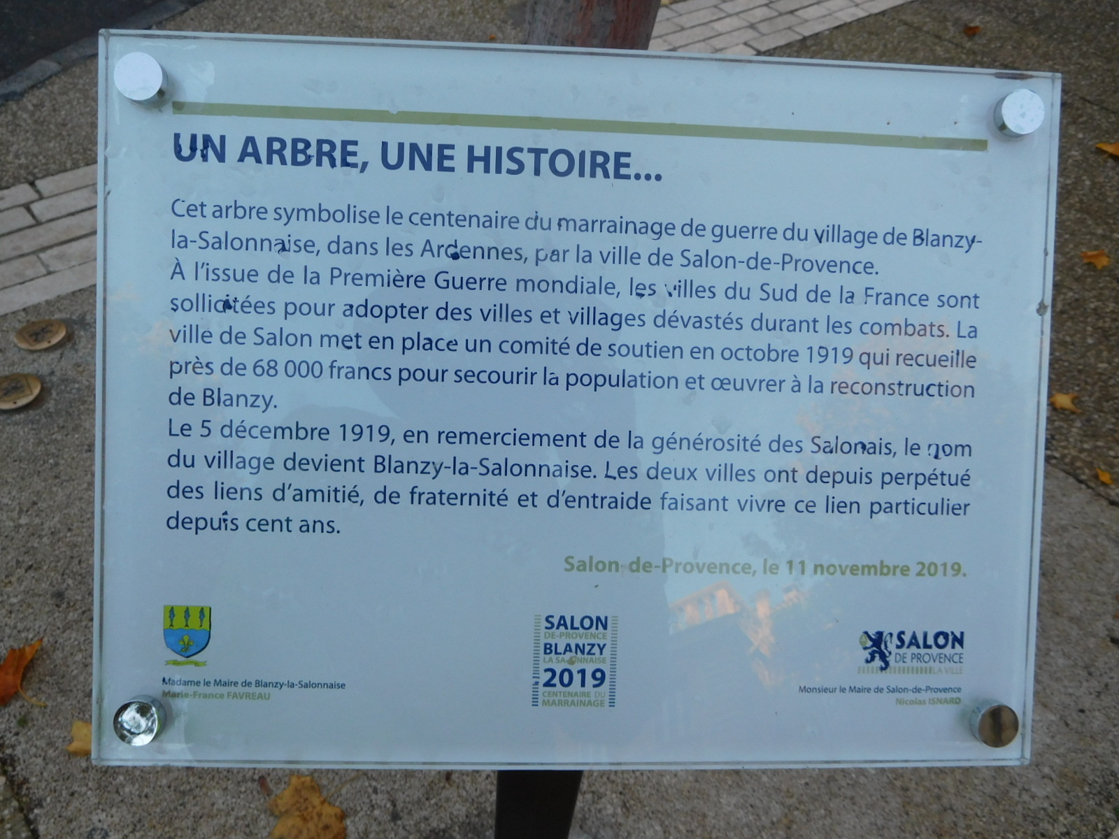 On the way out of town we passed some more statues and fountains, but one was rather unique. It was a large Christmas type tree with an interesting back story. After WWI, villages in southern France were invited to adopt ones on the north that had been devastated in the war. Salon contributed to the reconstruction of the village of Blanzy. In gratitude, the village renamed itself Blanzy-la-Salonnaise, and presumably planted this tree here at some point in remembrance of what had been done.