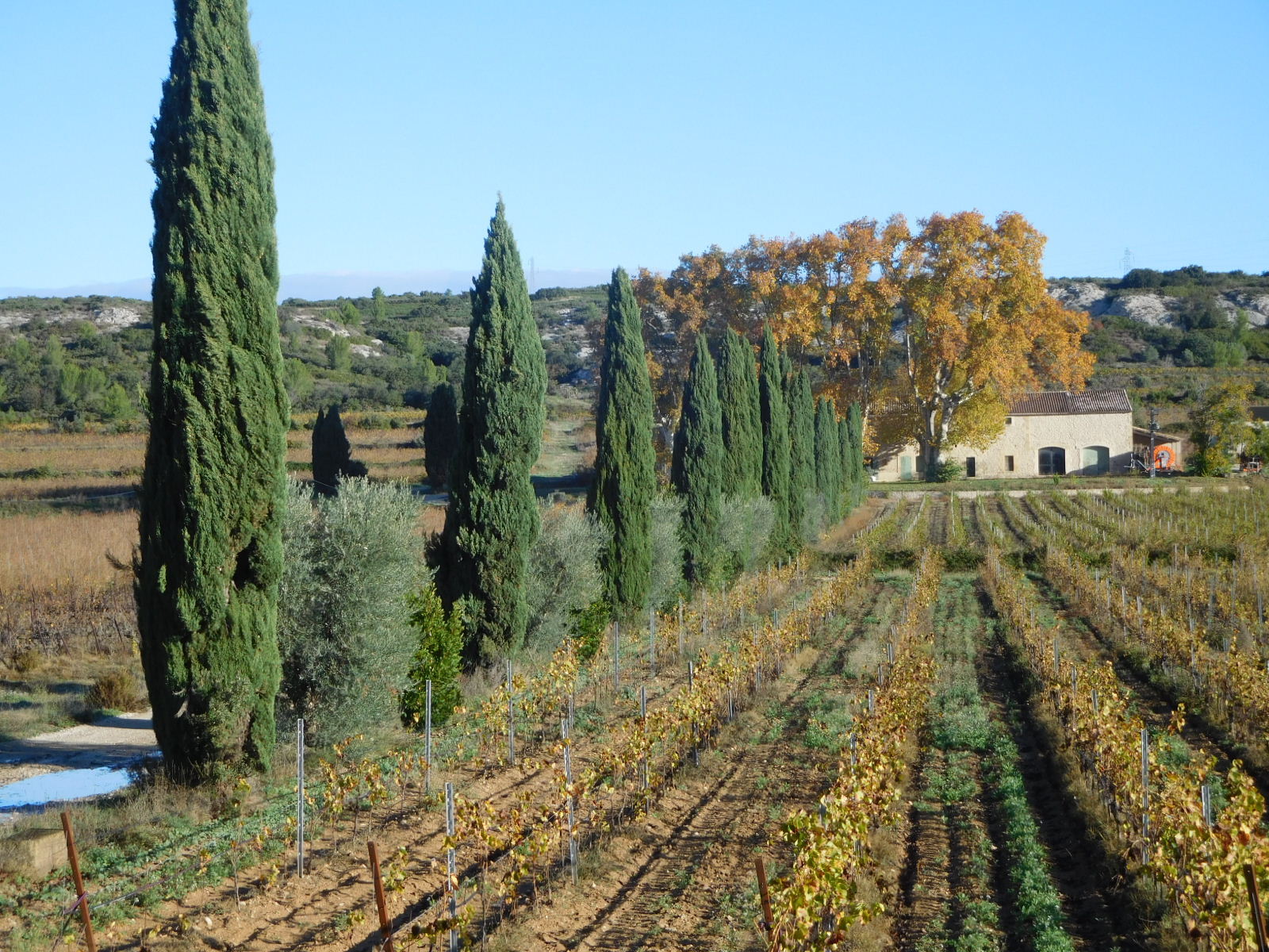 As we negotiated the roads outside of town, we continued to appreciate the unique Provence-ness of the landscape. That would include grape vines, Cypress trees, olives, low mountains, and earth toned houses, at least. In the photo below, all five of these can be seen, although I would not claim that they are arranged as artfully as in the region around Saint Remy.