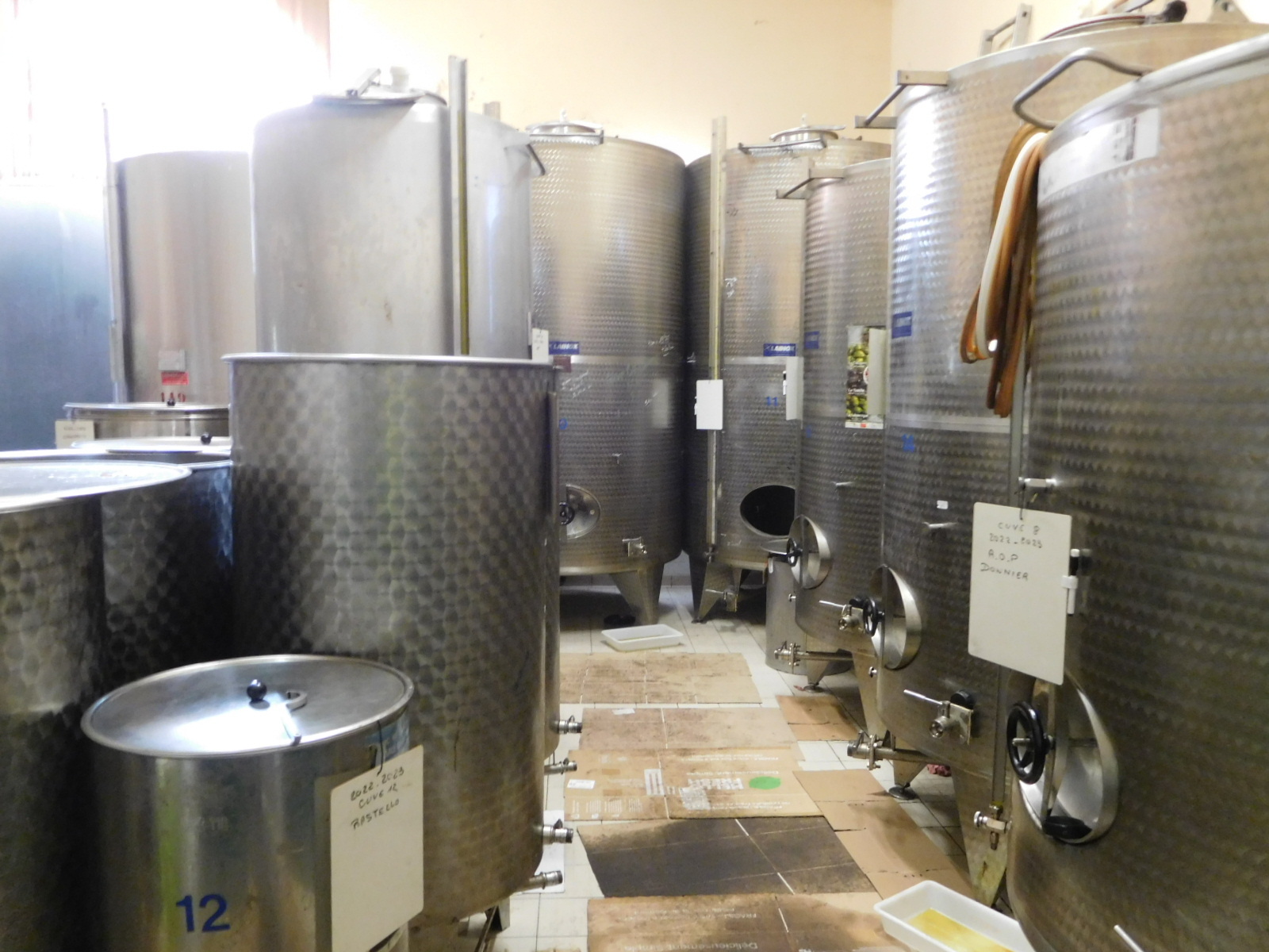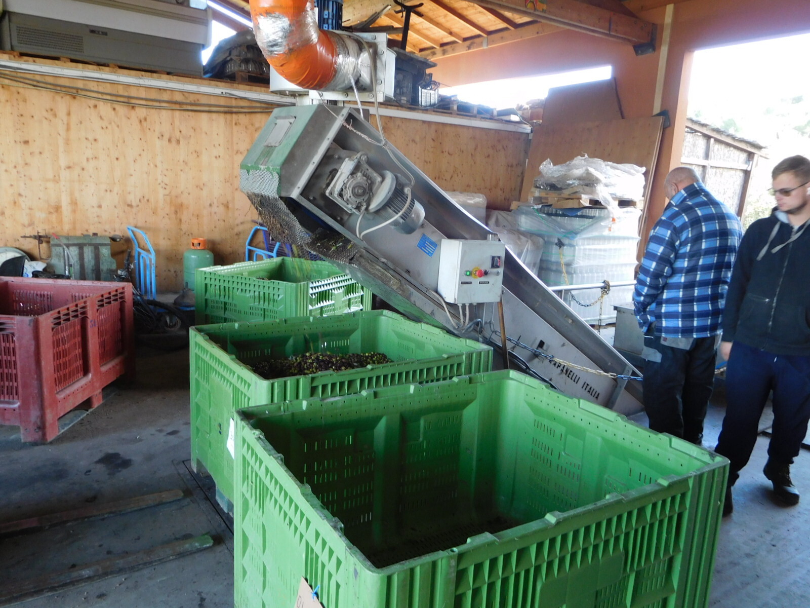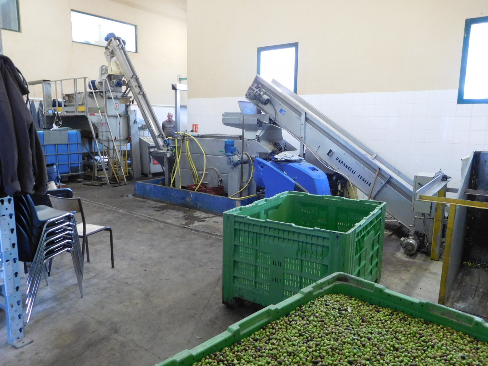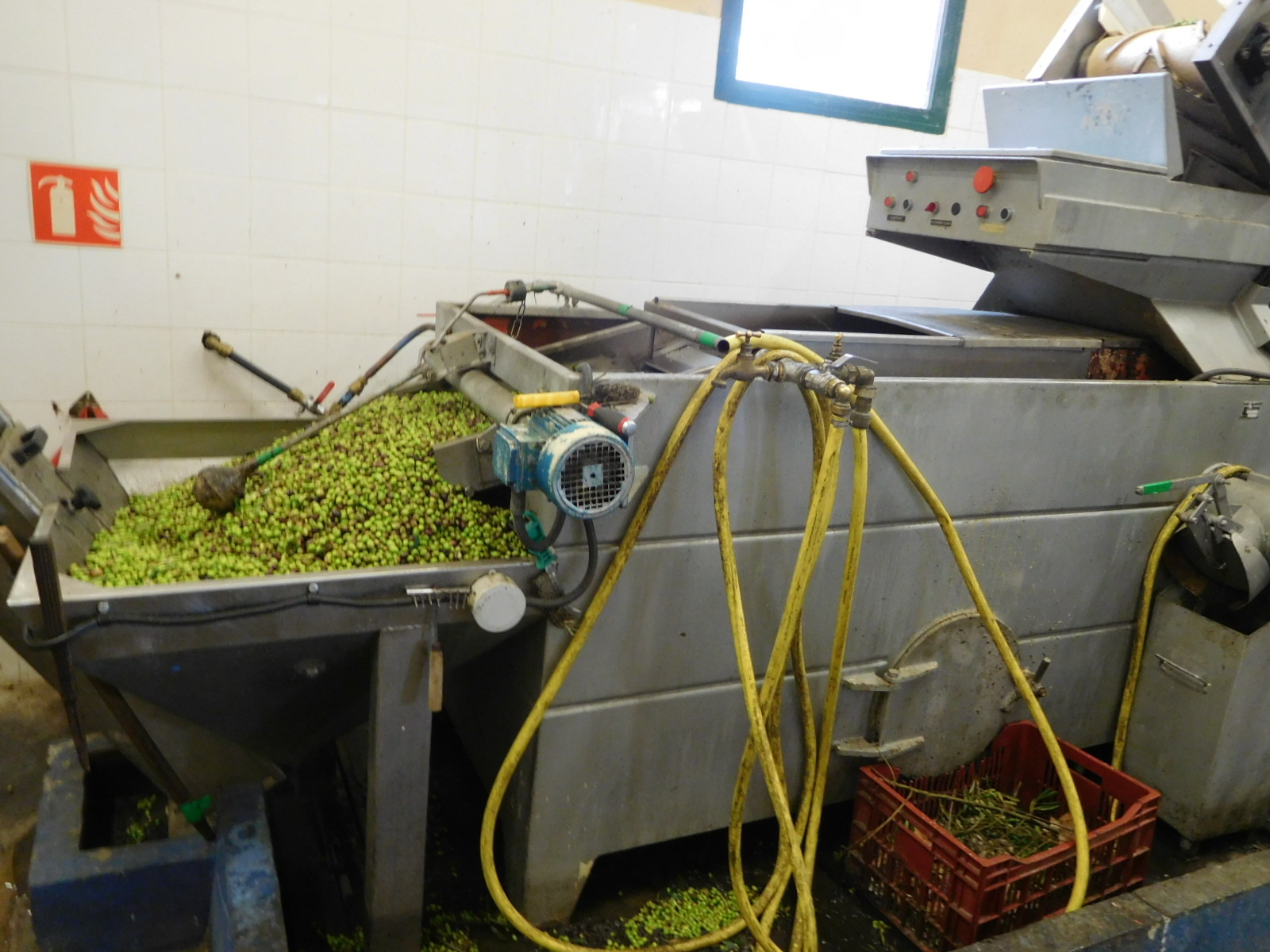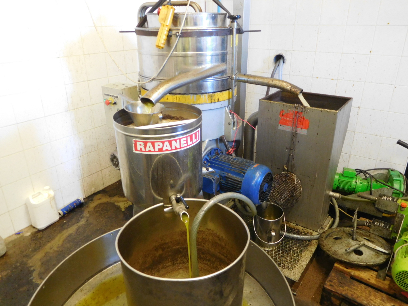Also in Velaux we ran into not one but two small olive oil mills. We stopped in to the one on our side of the road, and were pleased that the workers were willing to show us what they were doing. We also liked the fact that the lawyers had not yet gotten to them, and they were fine with us walking in and around the dangerous looking machinery.