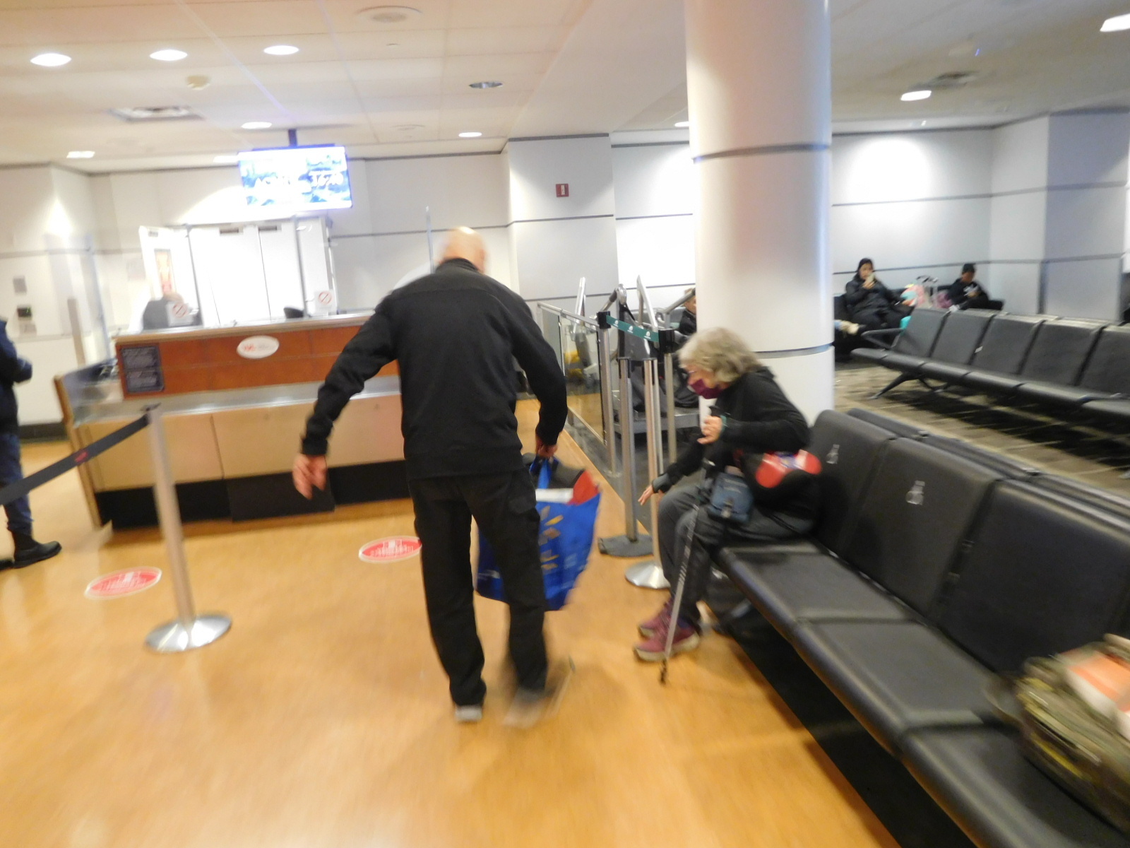 When the driver returned, he told us that the Gate 7 prohibition story was nonsense. He drove us down, way down, past all those 43 other gates, finally finding Dodie a seat at 7, and carrying her bags to it. So, good and bad employees all along.
