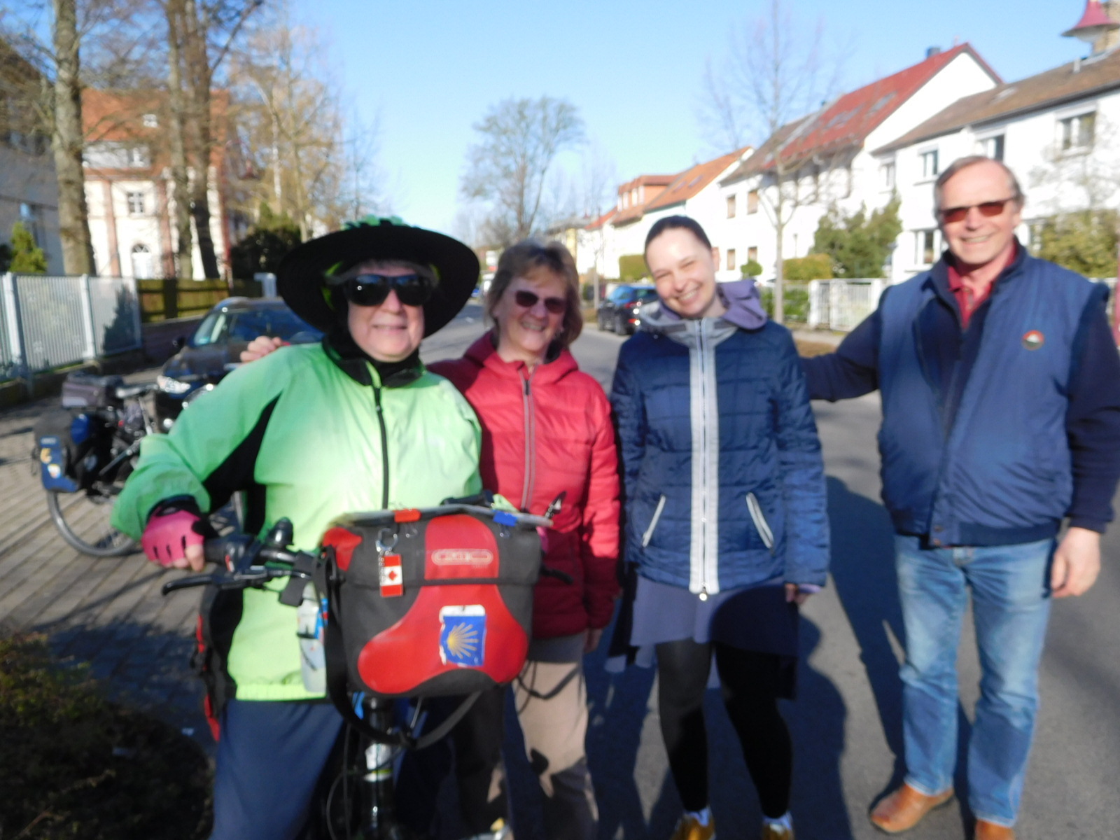 We woke up well before we had to, because of start of trip jitters for today being the day when the wheels would actually start turning. Fortunately Birgit and Jurgen also were up, and they put together yet another wonderful German breakfast. As is customary, we pilfered enough of this for lunch, but there was no danger of being nailed by the management! In fact, management helped carry the bikes and stuff to the road, and with Anja, gave us a lovely send off.