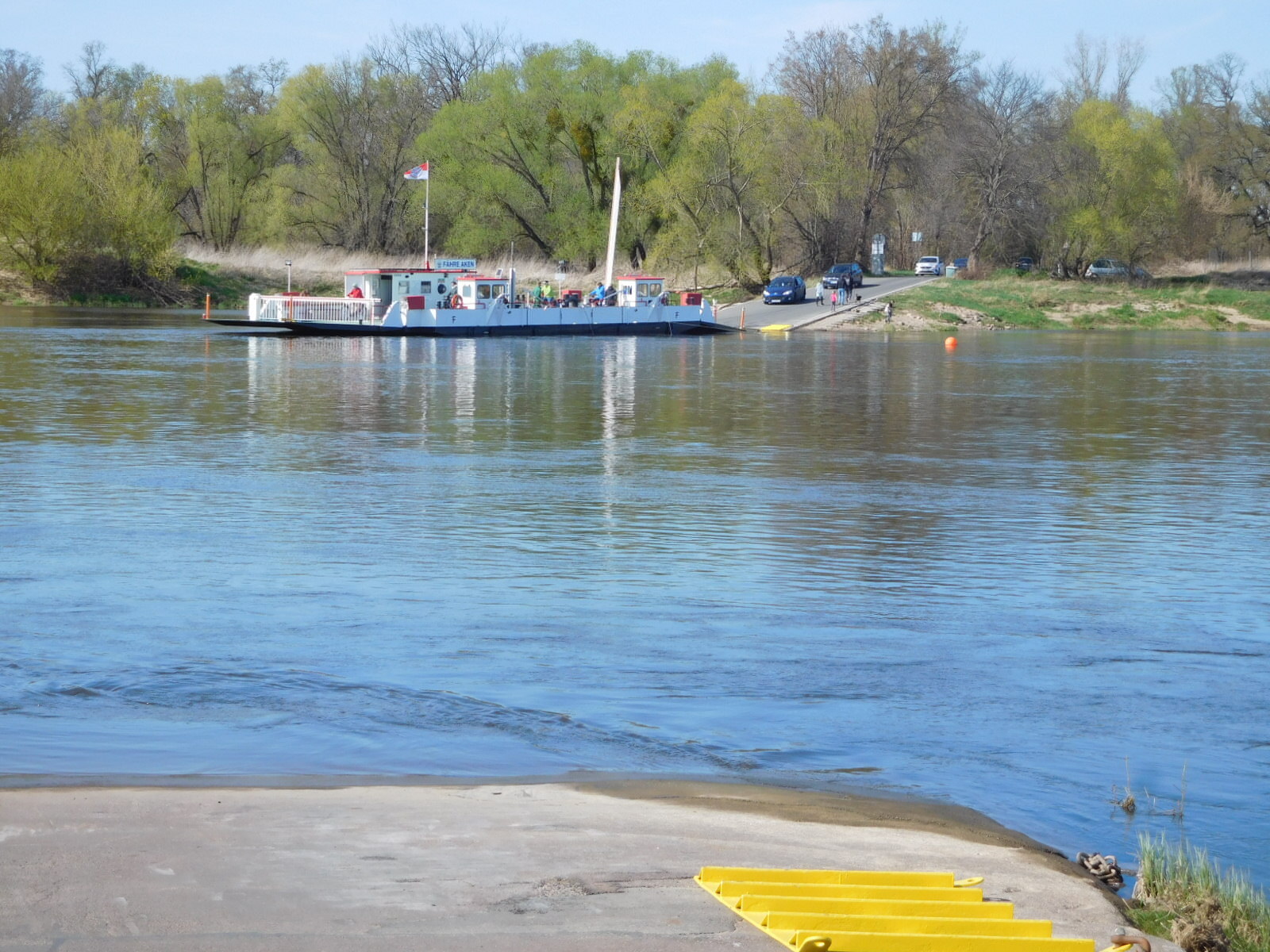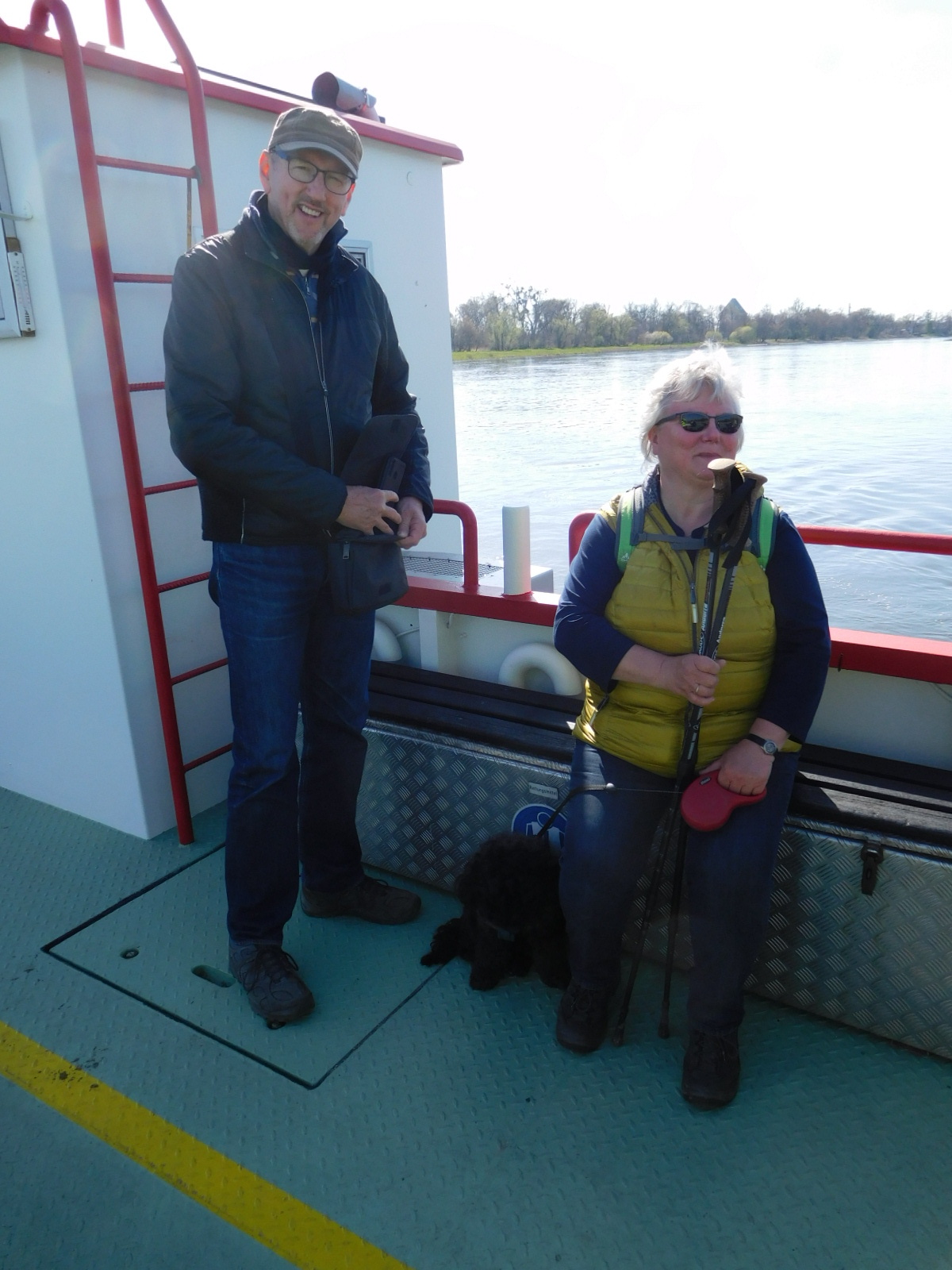We had chosen to follow the Mulde because it is a tributary of the Elbe, and the Elbe is what we plan to follow to the North Sea, on the Elbe Radweg. The Mulde meets the Elbe near Dessau, so that is where we finally did reach the Elbe. In fact we found ourselves right in the middle of it, with ferry crossing near Aken.