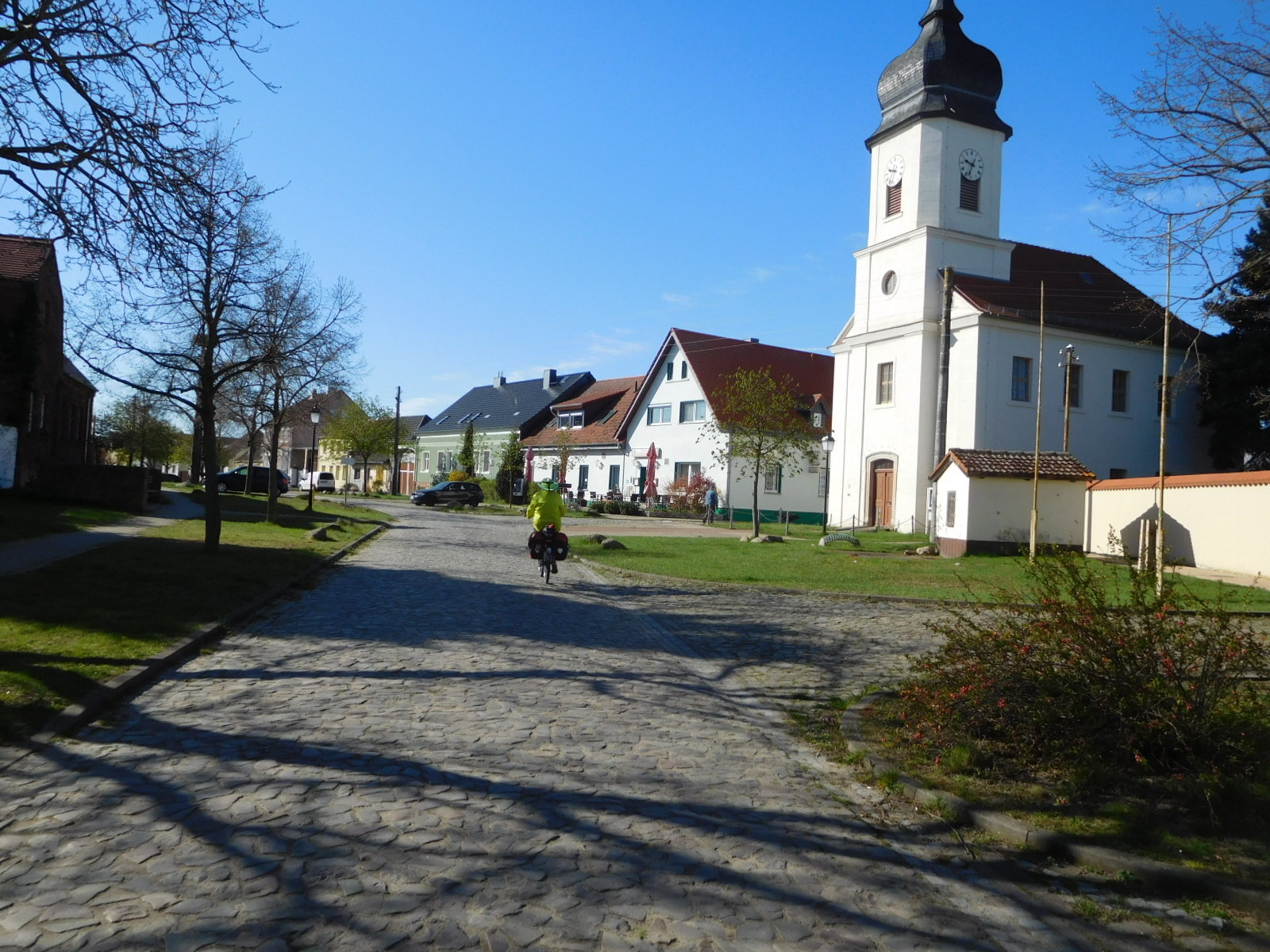 On the way to Hohenwarthe, at about 60 km done for the day, Dodie suddenly lost a lot of strength. Normally we would call that a bonk. But a giant cream filled easter egg did not help much, and she struggled the rest of the way to Hohenwarthe. To our surprise, when we got to the hotel, it's gate was closed, and behind it a sign "Ruhetag" - which means a day off.