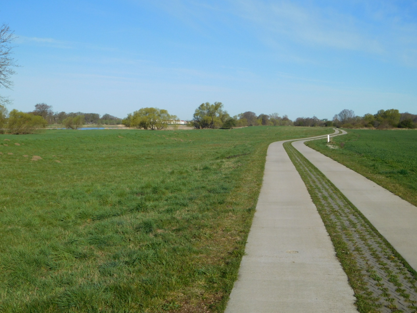 We switched banks of the river as we approached Magdeburg, preferring the moderately urban noodling around to fighting the rough paving on top of the dike on the other side.