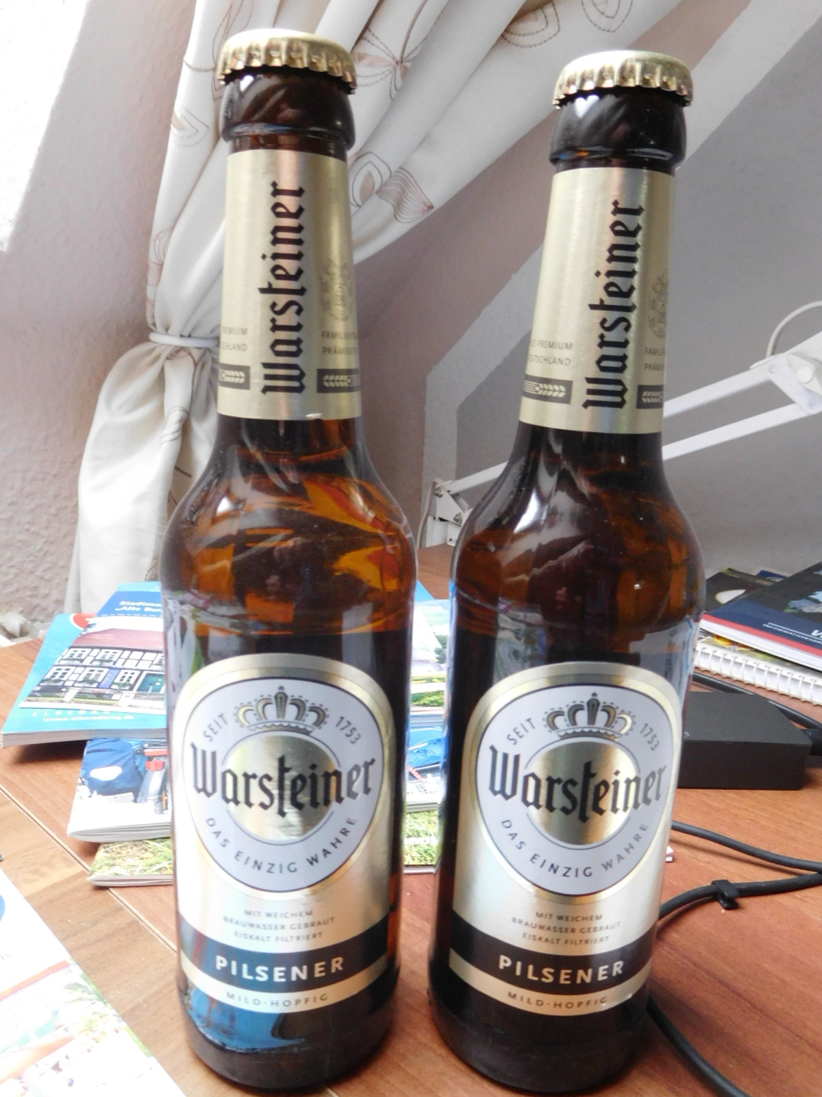 In the list of Reasons for Living as found on this trip, one might expect these to be our reasons. But tonight as a special treat, we picture a reason adored by many (just not us) - the bottles of Pilsener beer that came with our apartment!