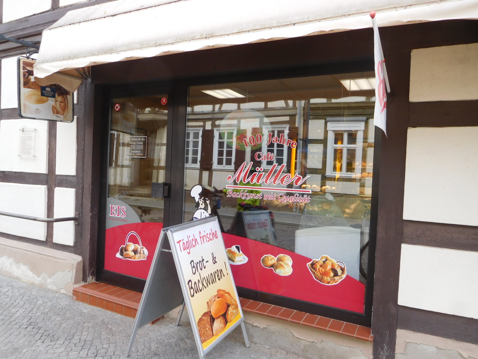 The owner pointed out that the hotel around the corner offers a breakfast buffet, not limited to guests. We checked it out, and the price is 15 euros. Instead we bought a bunch of sandwiches from one of the nearby bakeries, that we can use at breakfast and lunch. Whereas in North America a "sandwich" is a lunch food, given that it incorporates bread, cheese, meat it actually equals a German breakfast.