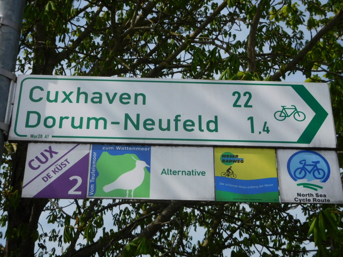 Having completed the Elbe yesterday, we were now firmly on the Weser. As usual in Germany, you are often on more than one route at any given time. They all have their own logos and share the great bicycle direction signage.