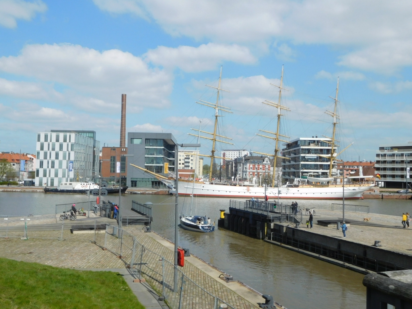 Bremerhaven was a major submarine base during WWII, and consequently got itself obliterate by bombing. So there were not really any old buildings to look at. But the inner harbour does have a couple of iconic new buildings.