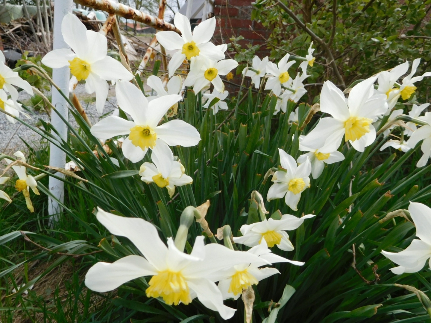 We came out of the forest into an area of regular houses facing the dike. There was not much exciting about these, but we did like these narcissus.