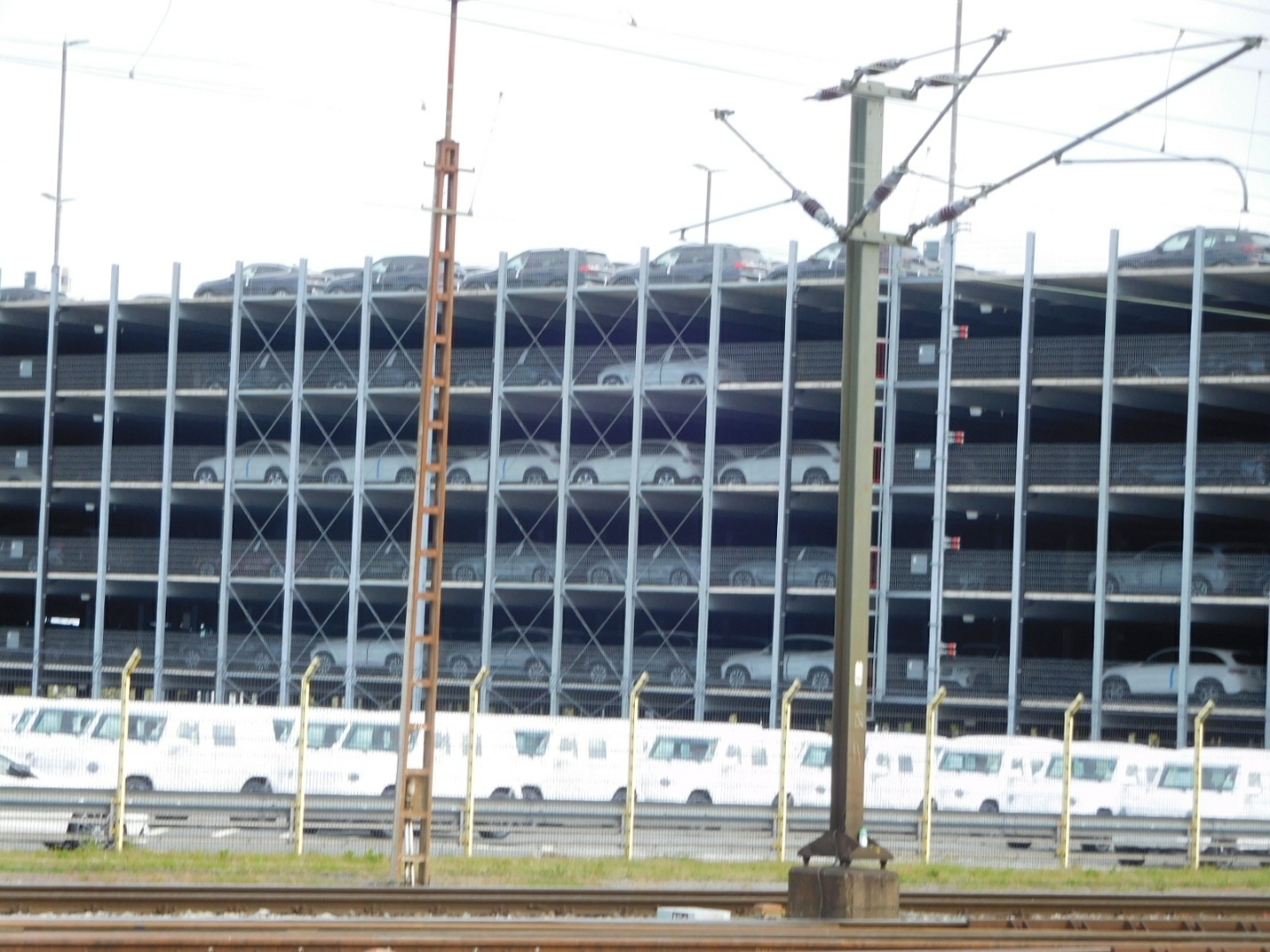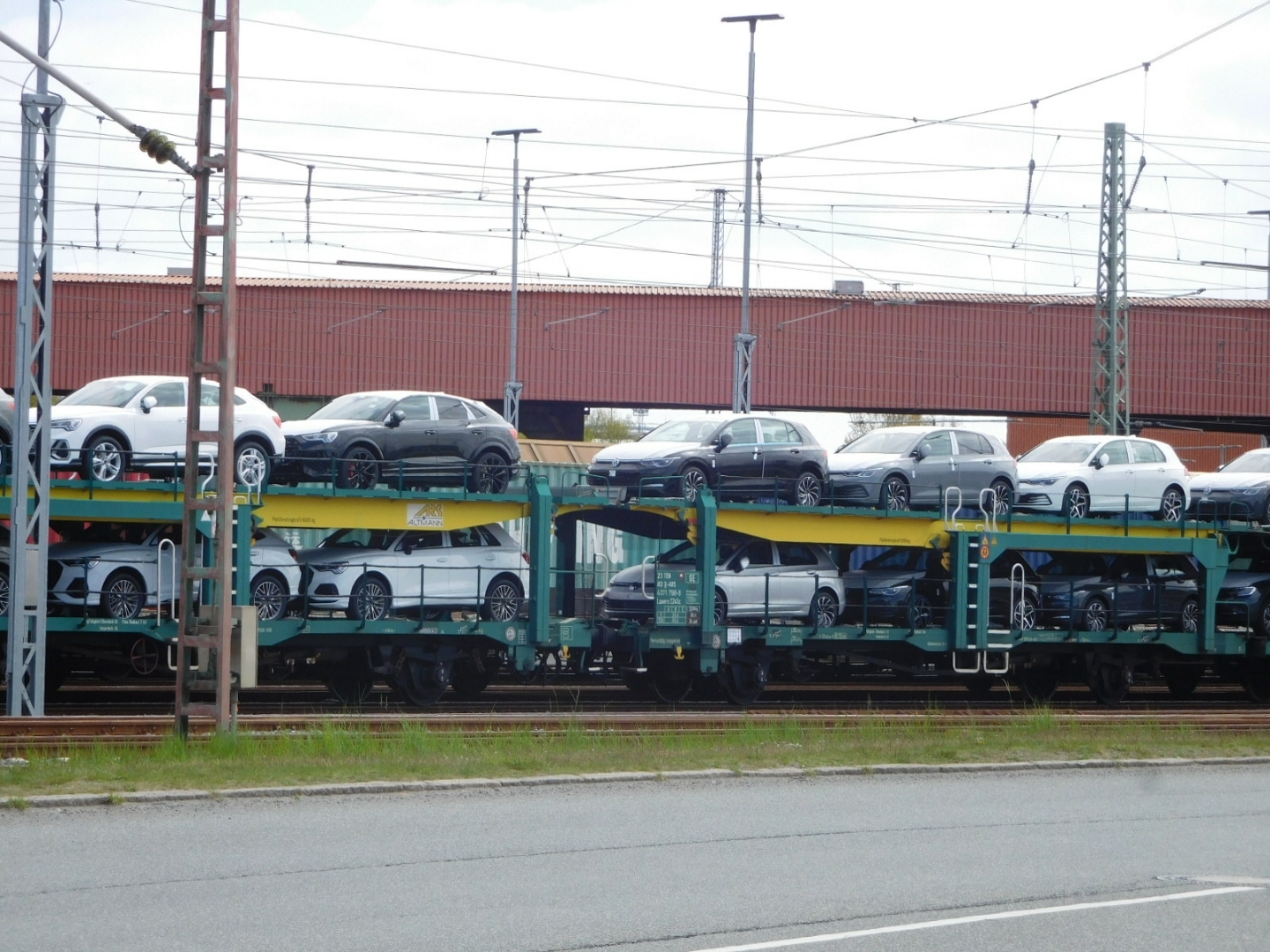 As we drew closer to the city, things got exciting in an unaccustomed way. all around us was evidence of pure economic muscle. This included hundreds of big trucks, trains carrying cars, multilevel storage facilities containng cars, and very giant container ships. Through all the activity, in typical German style, our bike path wound. It was fun, as we crossed side roads, to have the giant trucks come to a stop for us.