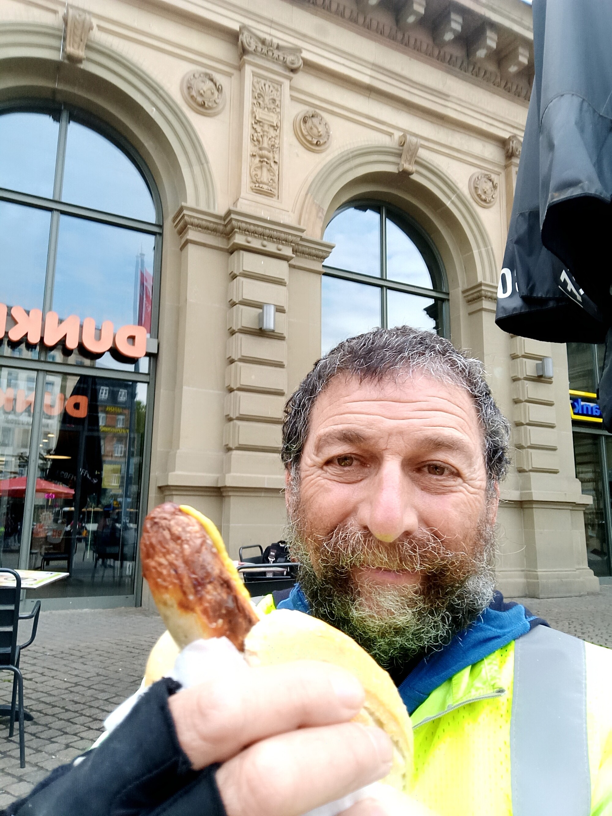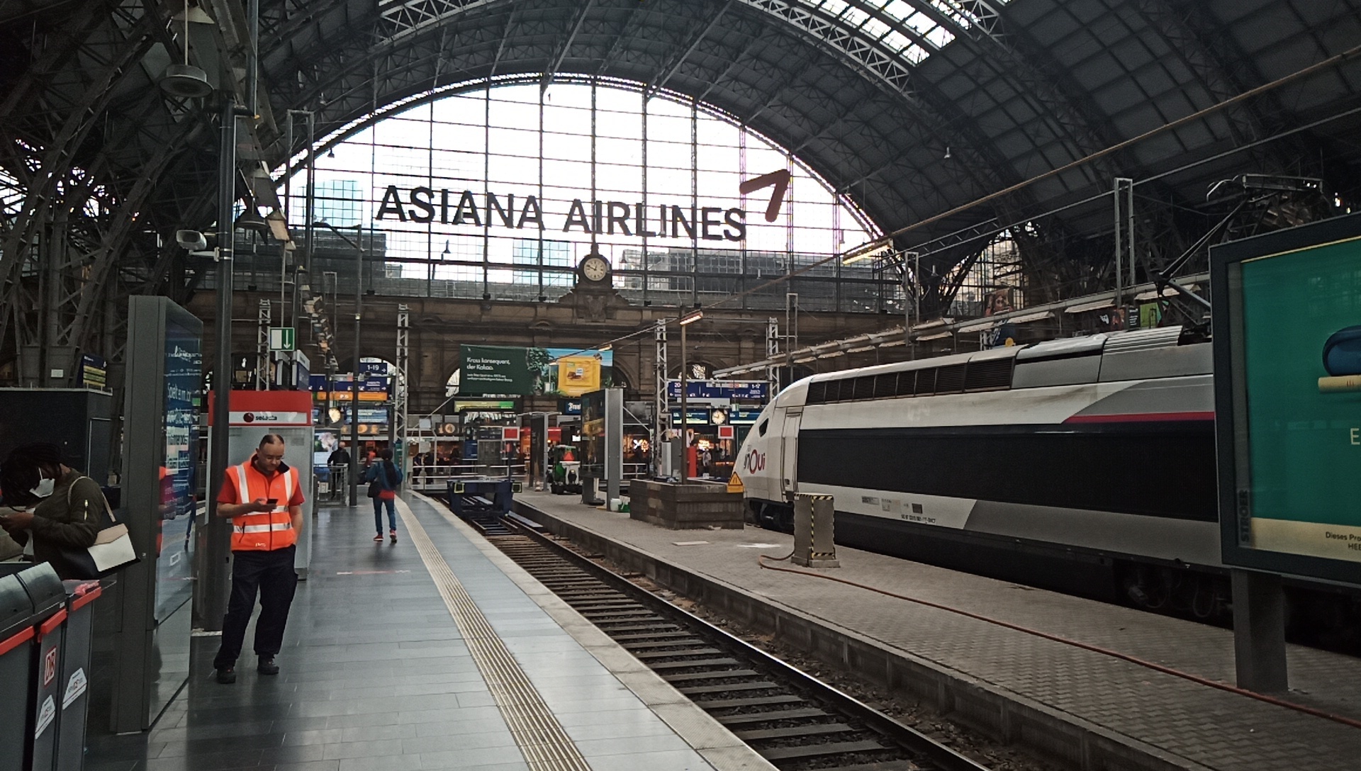 With this train and station it was a direct roll on for the bikes, no need to unpack. We had to change at Kassel and again at Frankfurt, but there was no unpacking and no running down the platform dragging bags and bikes to get to a certain car, this time!