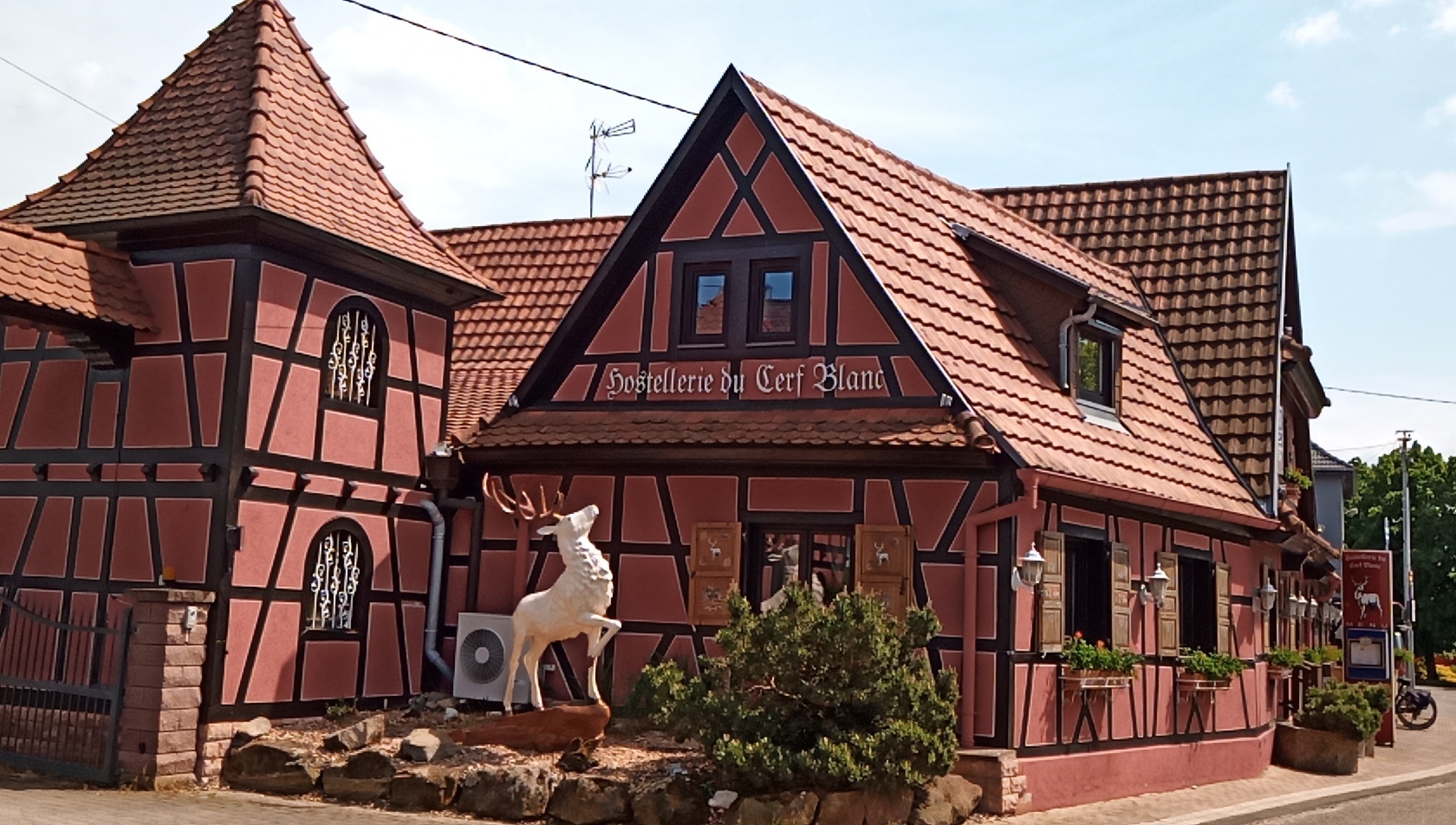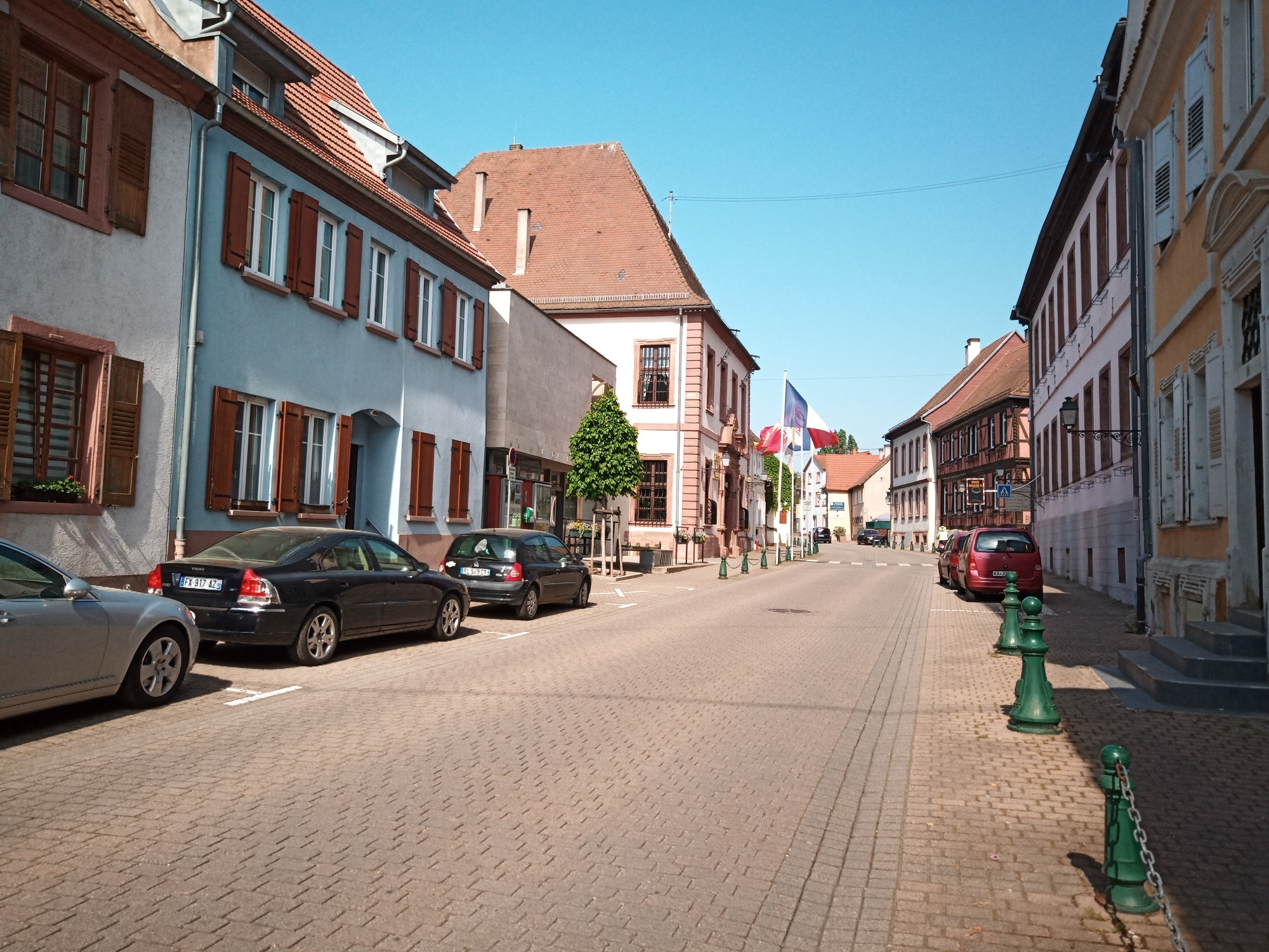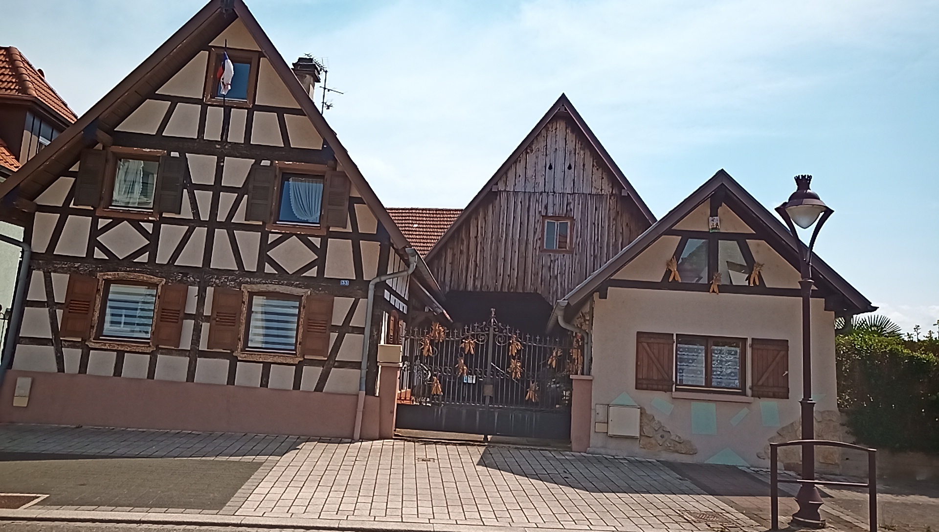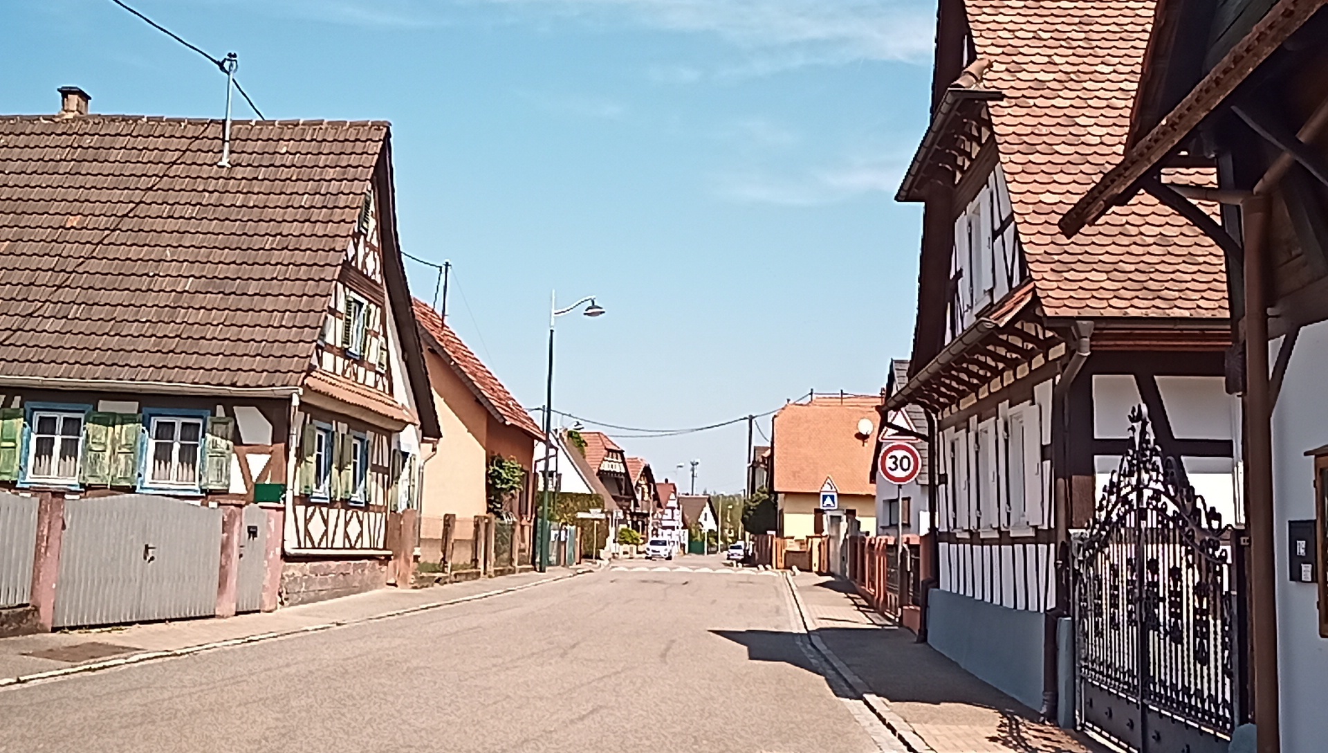 We are now in Alsace, which is a unique self contained region, but which has passed back and forth between France and Germany many times. Half timbered houses are part of the Alsace look, but they are a little different from those seen in Germany itself. Here are some shots from town along the way: