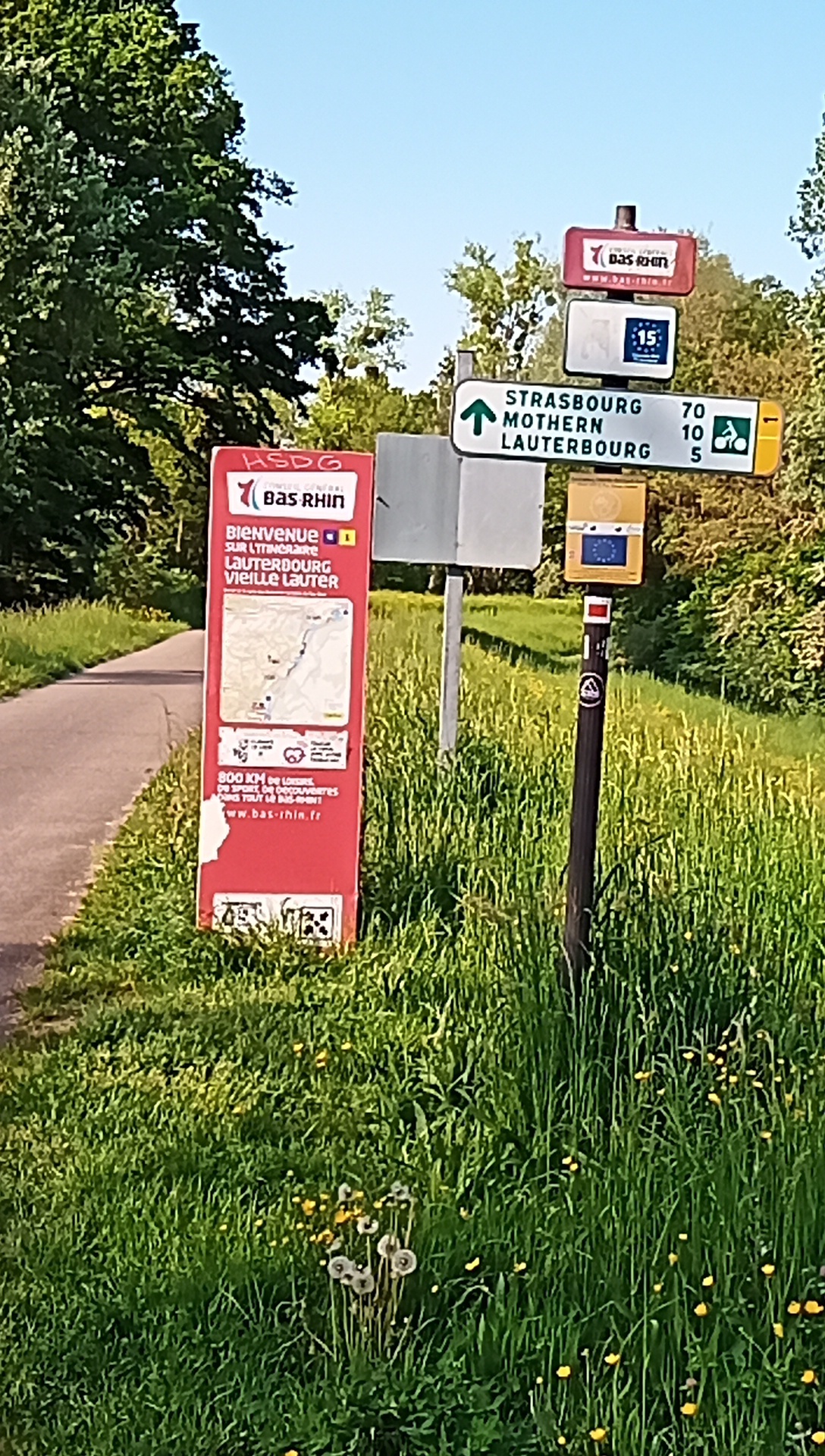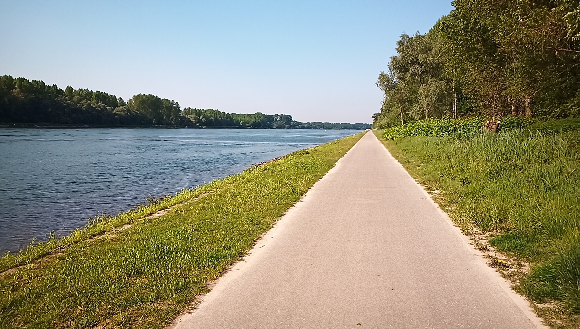 The radweg (errm "piste cyclable") looked like this for us for some of the day, and otherwise we were riding the other side of a dike, with a good surface but no view. For Grampies, this kind of path is just heavenly.