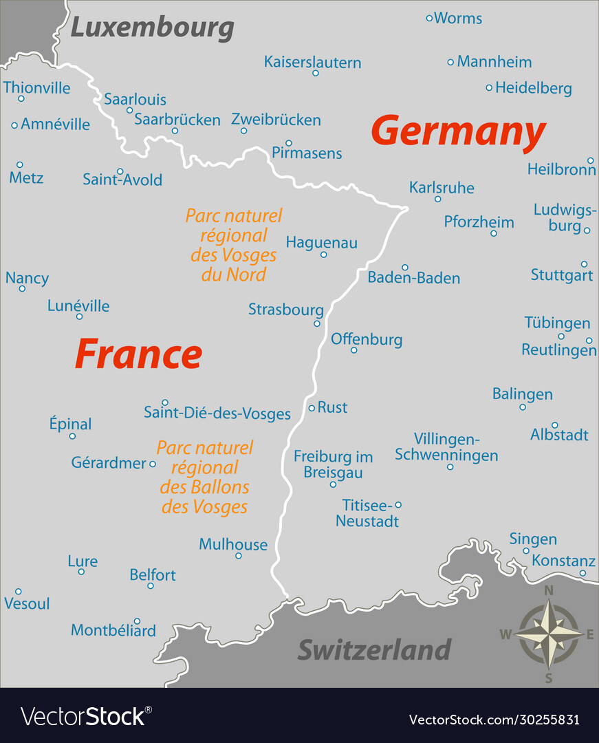 The Rhine, of course, spends a lot of time running through the middle of Germany, such a where it says "Germany" on the map below. But in the Alsace region, where we are, it suddenly forms the border with France. So if you would be cruising down the west side of the river, at that point near Karlsruhe on the map, you would suddenly be in France. That actually happens just north of the (French!) town of Lauterbourg.