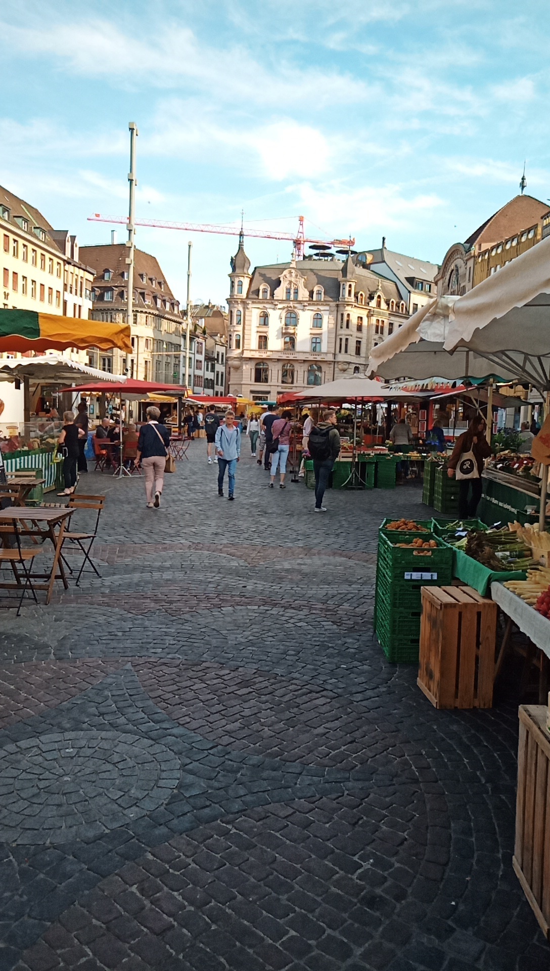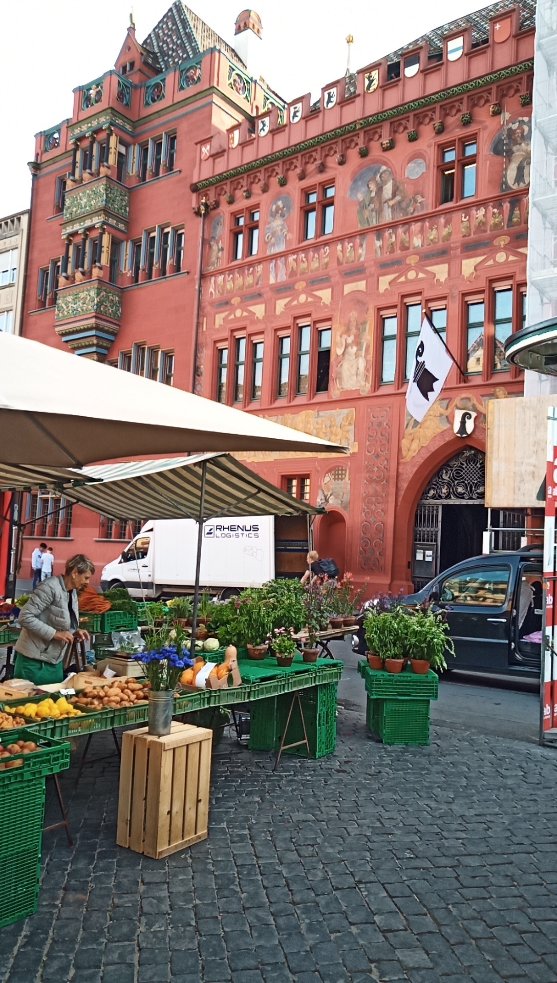 From the Munster platz we found the markt platz. There are beautiful buildings all around it. They are vaguely Parisian and vaguely Viennese, but do seem unique to here. One in particular had elaborate frescoes, something we know we will also run into elsewhere in Switzerland.