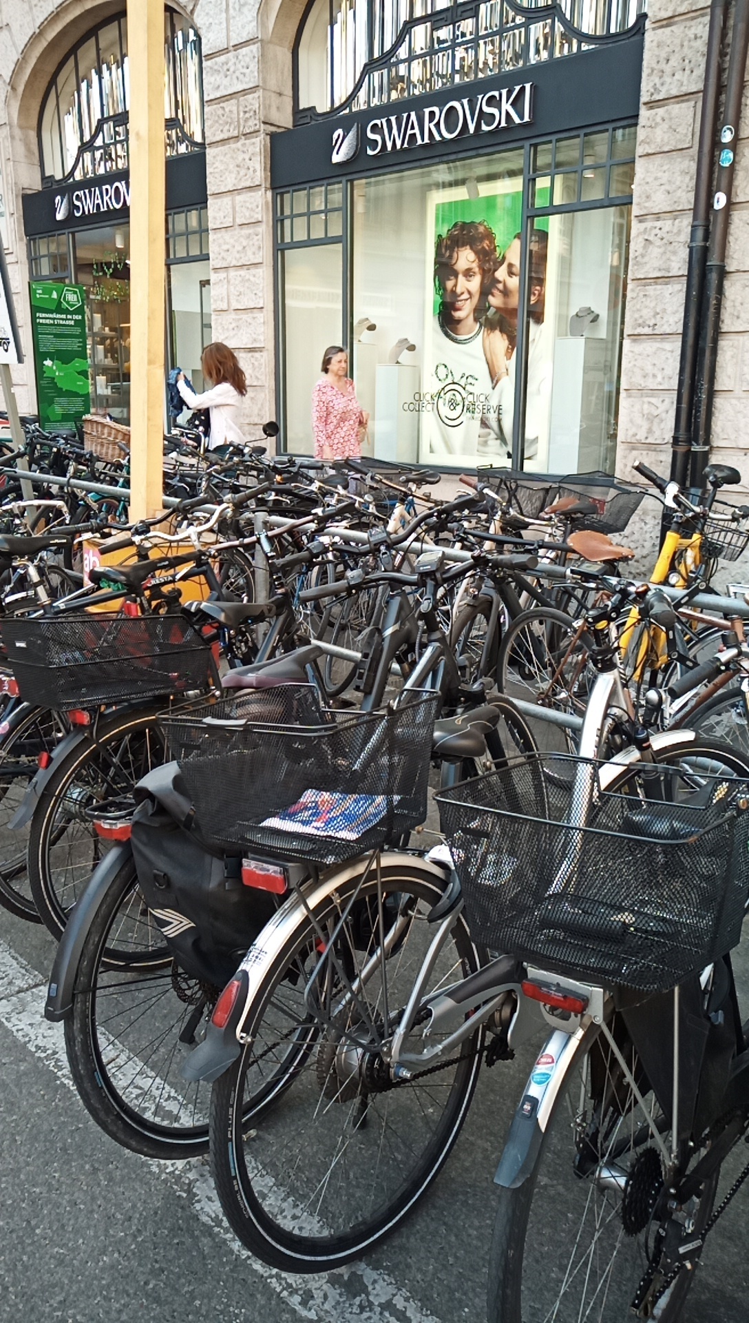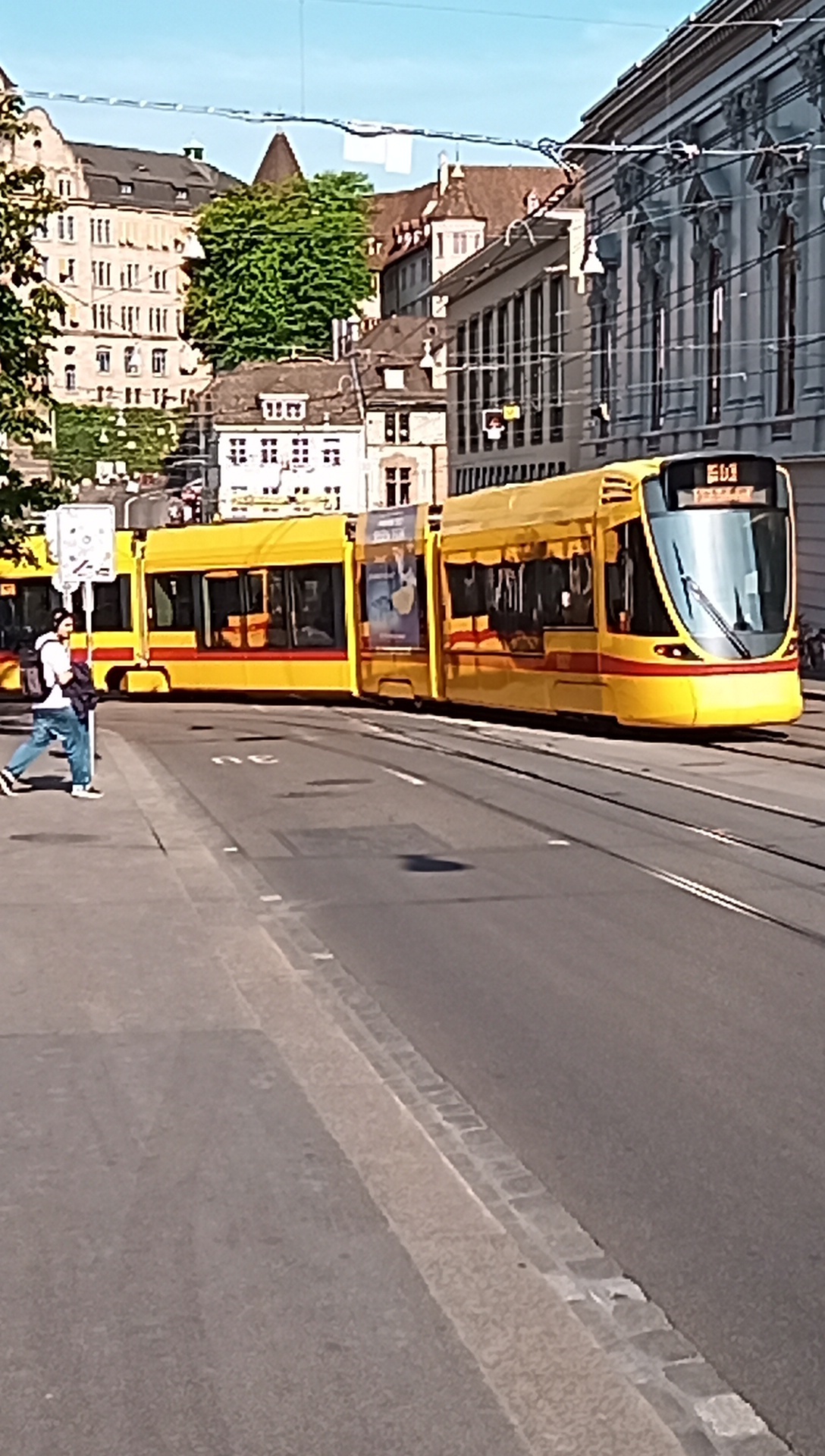 Even with the river crossings, we still had to fight our way to the old town. The environment we found ourselves in was one in which cyclists, cars, and trolleys were all thrown in together, each jockeying for position. The cyclists were brave, and darted this way and that, while the trolleys at least were constrained to their tracks. Yet they could fly silently toward you at any time. The pedestrians, also caught in the mix, we found to be both rude and crabby. Interfere with one in any way, including having them step into you, and you would earn at least an angry frustrated look, or more commonly some harsh words. Dodie took to responding in English, "I can't understand a goddamn thing you say". This would normally elicit a continued tirade in whatever language. We know it's wrong to use national stereotypes, but we have seen this on past trips as well. The Swiss of Basel are crabby and frustrated about something!