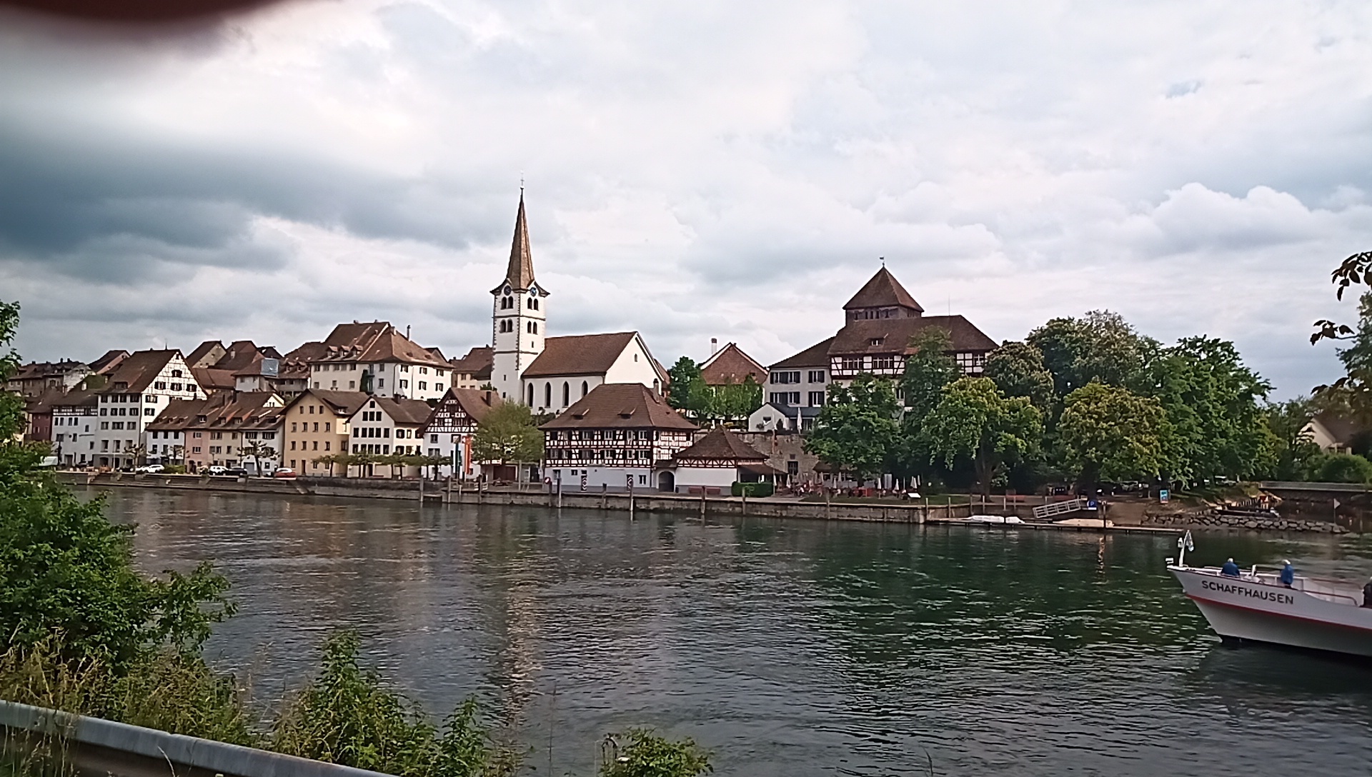Just before Stein am Rhein there was another nice view across the river, this time to Diessenhofen. We had raced tht boat up the river, and declared victory when it quit at this point.