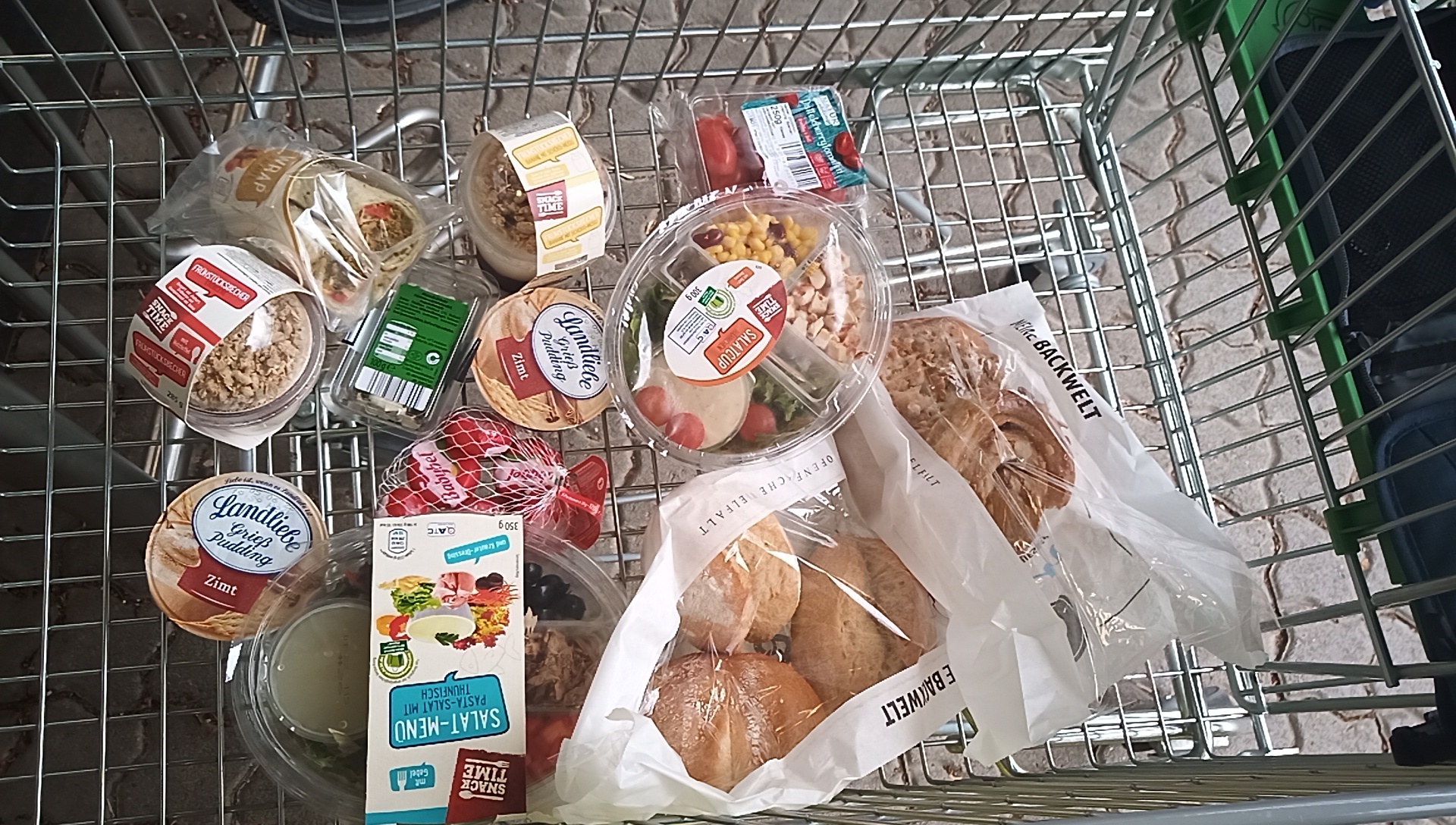 Mystical forest meandering came to an end when we ran into an Aldi. We sent Dodie in and once again, since this is Germany, she came out with a great pile of stuff for not many euros.