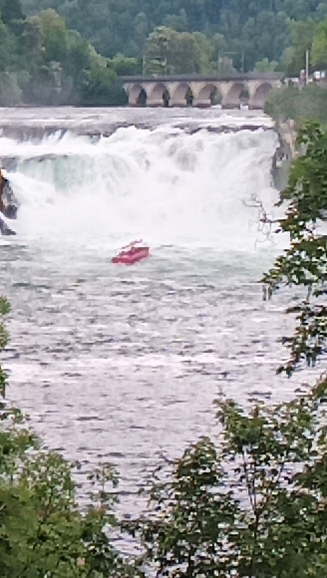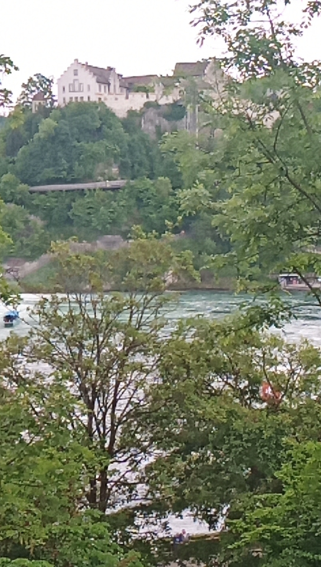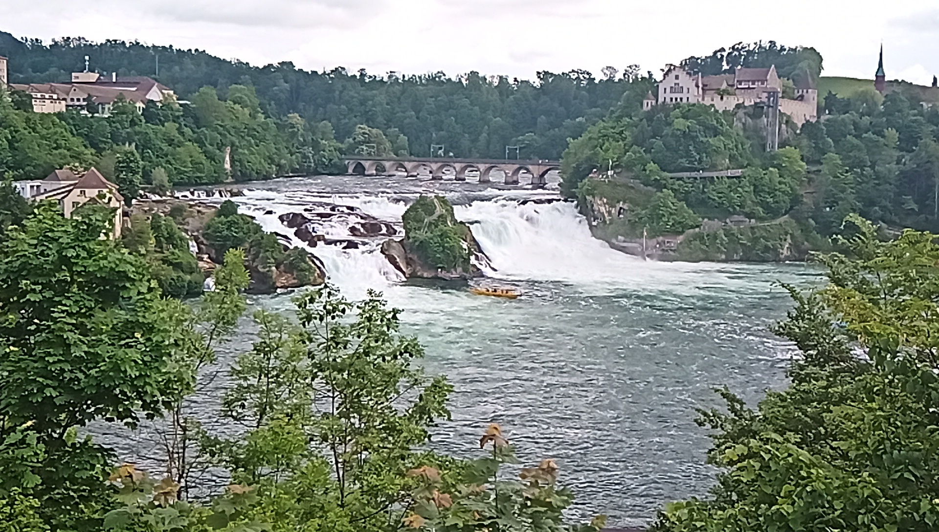 A very famous European landmark, just at Shaffhausen, is the Rheinfall. It's not exactly Niagara, but it is impressive. And there are boats that at Niagara would be the Maid of the Mist. Some land at a spit of land in the middle of the falls, and I think you can get off and climb. Not us!