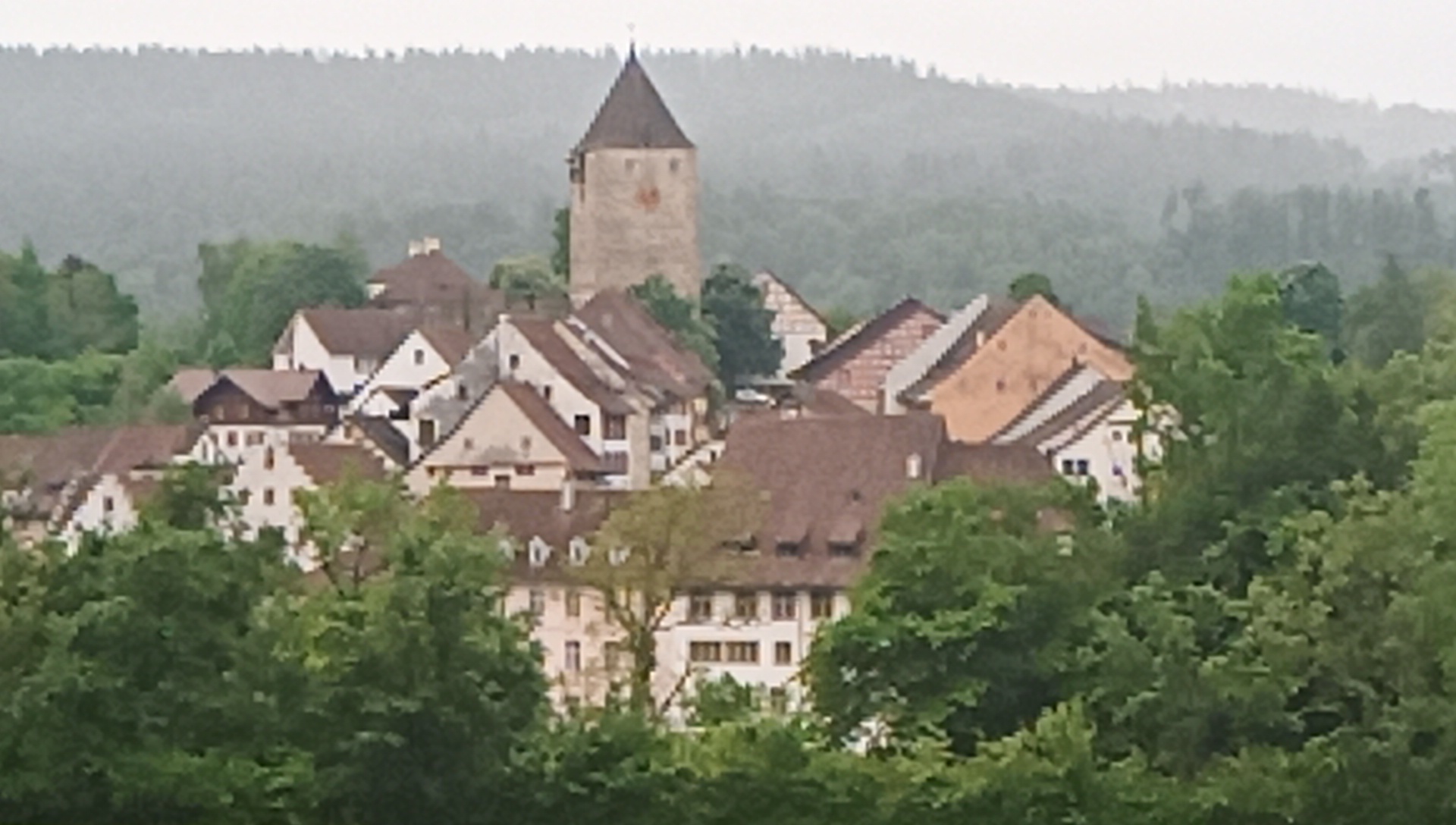 Today started with light rain, but no problem. We put on our bright yellow waterproof stuff and headed off. The rain produced a misty appearance to the southern Black Forest, and the peristant calls of a cuckoo added to the mystique. This had me wondering what manner of mythical creatures live in that forest, and whether they might be about today. About mid day I got the chance to put the question to my phone, and learned that a number of Harry Potter and Lord of the Rings type creatures live in the Black Forest. But I was more interested in traditonal ones, such as imps. The main answer seems to be singing nymphs, related to the Lorelei on the Rhine: