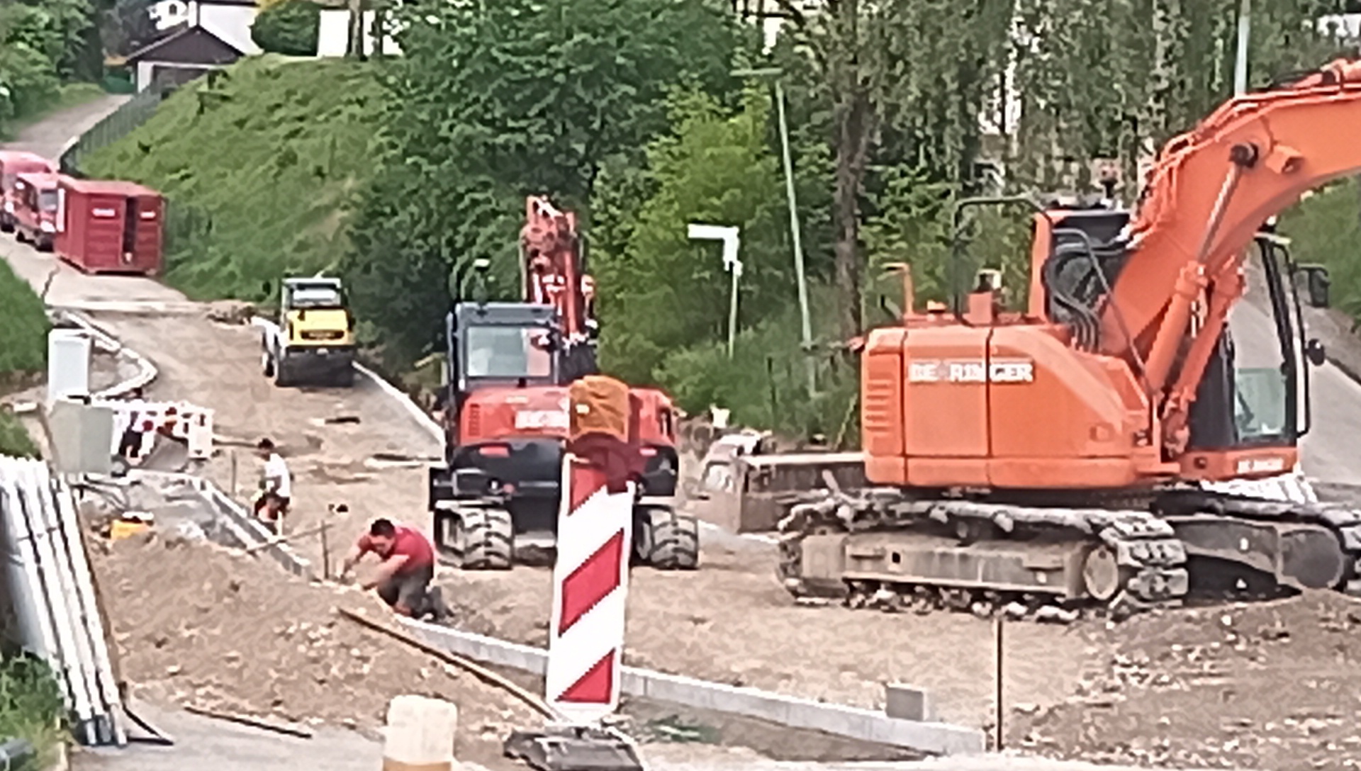 Several times we ran into parts where the path was ripped up. Our policy is to dismount and just walk through the workers and machinery, taking care that they do not accidentally bonk us with an excavator. Usually the workers just stare passively at us as we invade their space.
