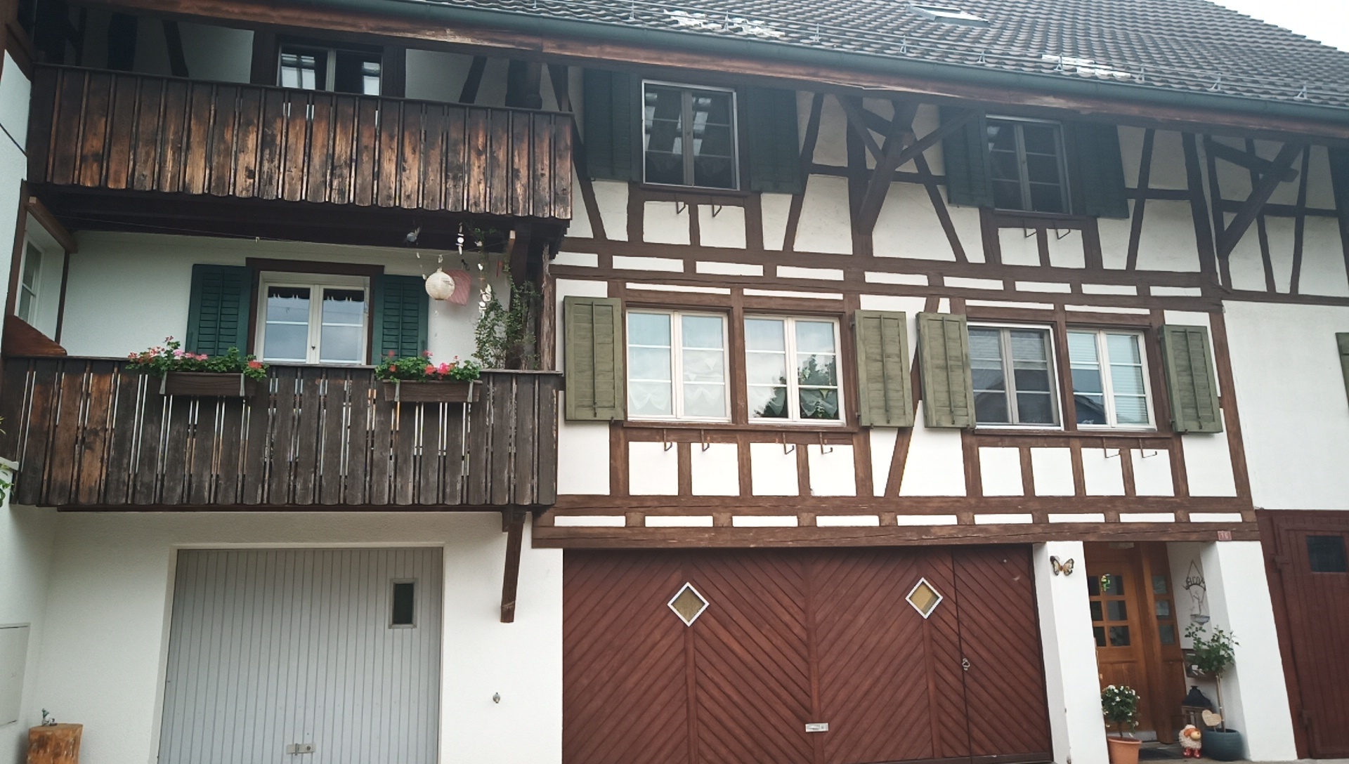 The route here passes in and out of Switzerland, and in spots it certainly looks typically Swiss, with the fachwerk houses, and actually the start of the window boxes with red geraniums.