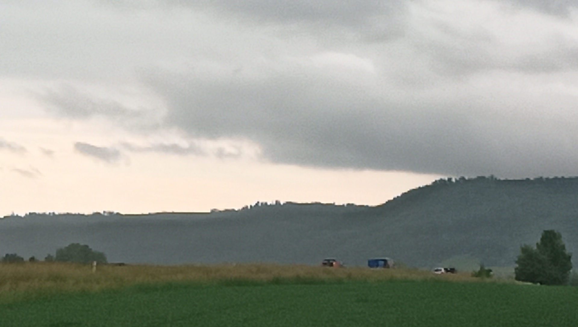 Of course we are always interested in the crops we pass along the way, for so many long kilometers. My cheap phone camera is rather fuzzy, but maybe someone can make out which grain this is. Dodie is voting for barley, meaning that this will one day get drunk as beer.
