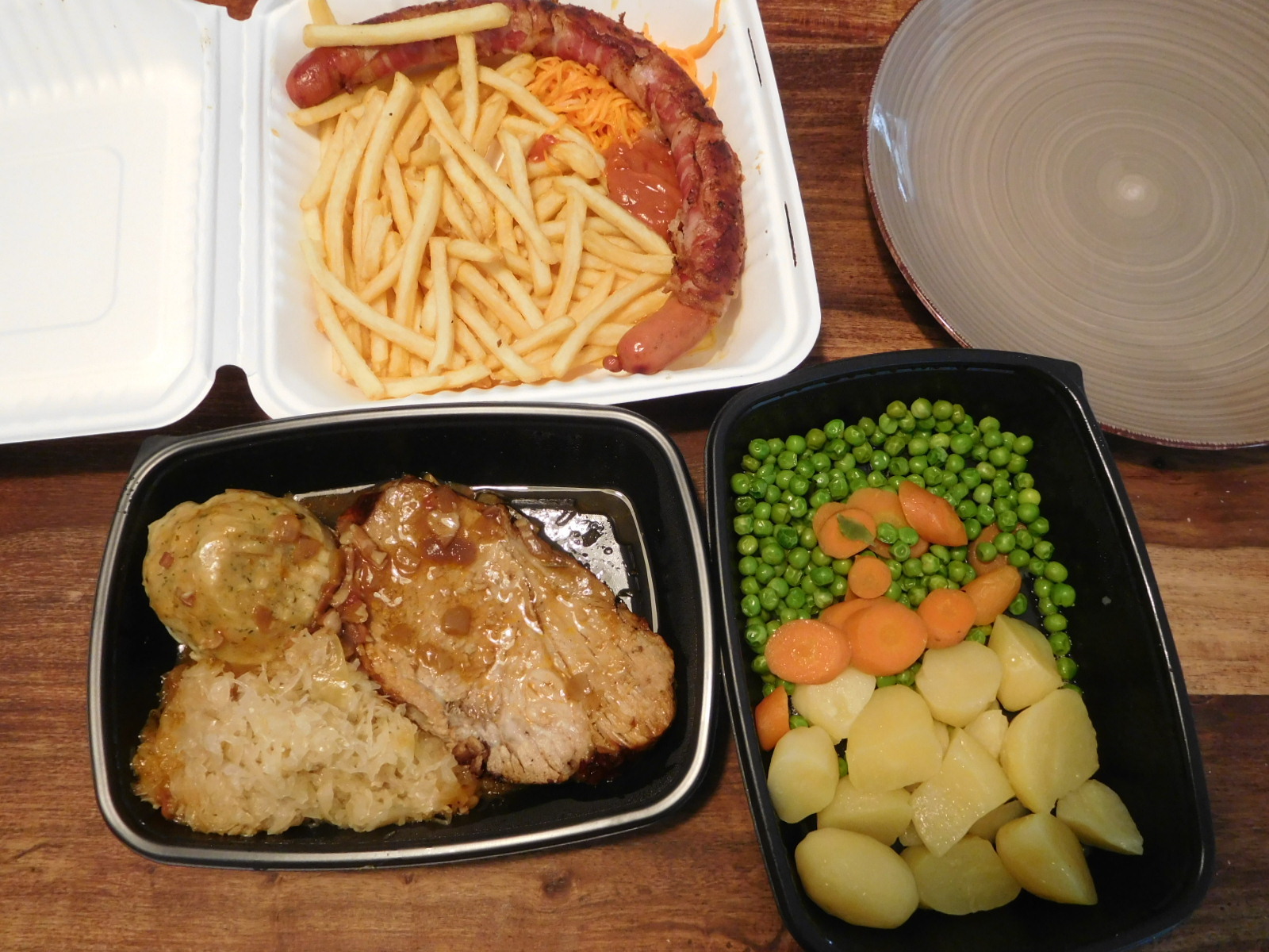 Other classic food stuff also came home. There was roast pork with sauerkraut, and Bernese sausage - which has cheese inside and a bacon wrap. We would call that a bacon cheese dog, eh!