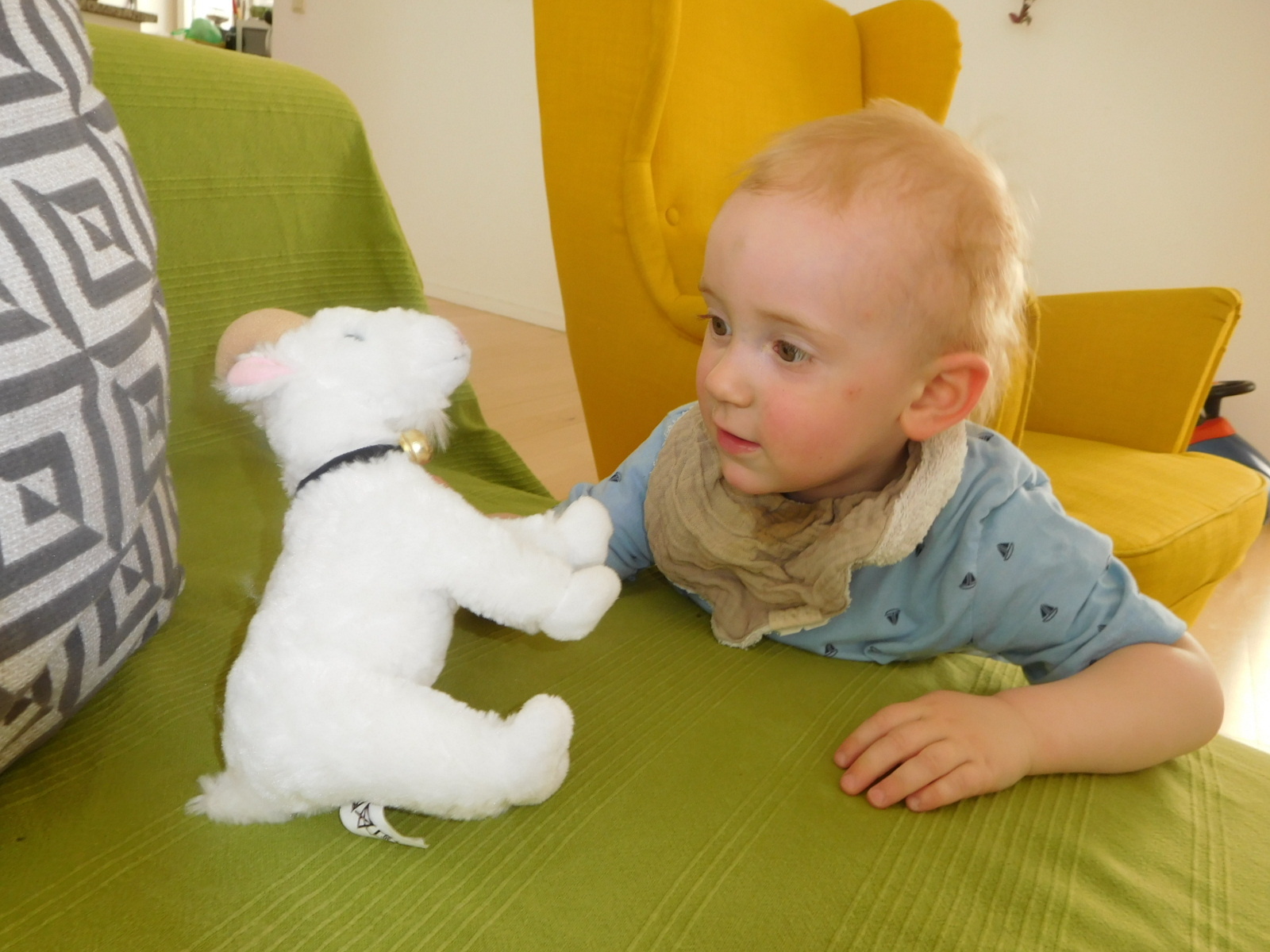 Safely back in the house, Matti received the stuffed version of Schwanlii, which we had got at Heididorf. This joins many other stuffed toys already on his bed, but for now it was a hit!