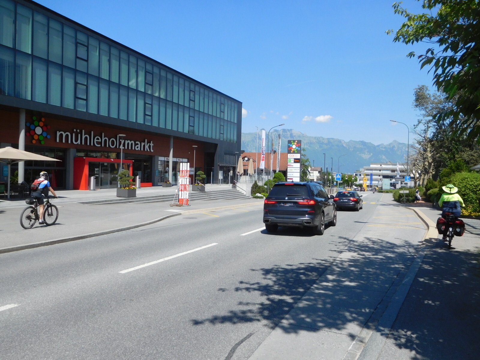 Schaan, was one of the towns we thought we would look at. But after a fair bit of the road conditions you see in the two shots below, Dodie said "I would pay money to get out of here". Of course, this was still Liechtenstein, and as mentioned we were broke! No matter, we found another bike path and carried on without getting smooshed.