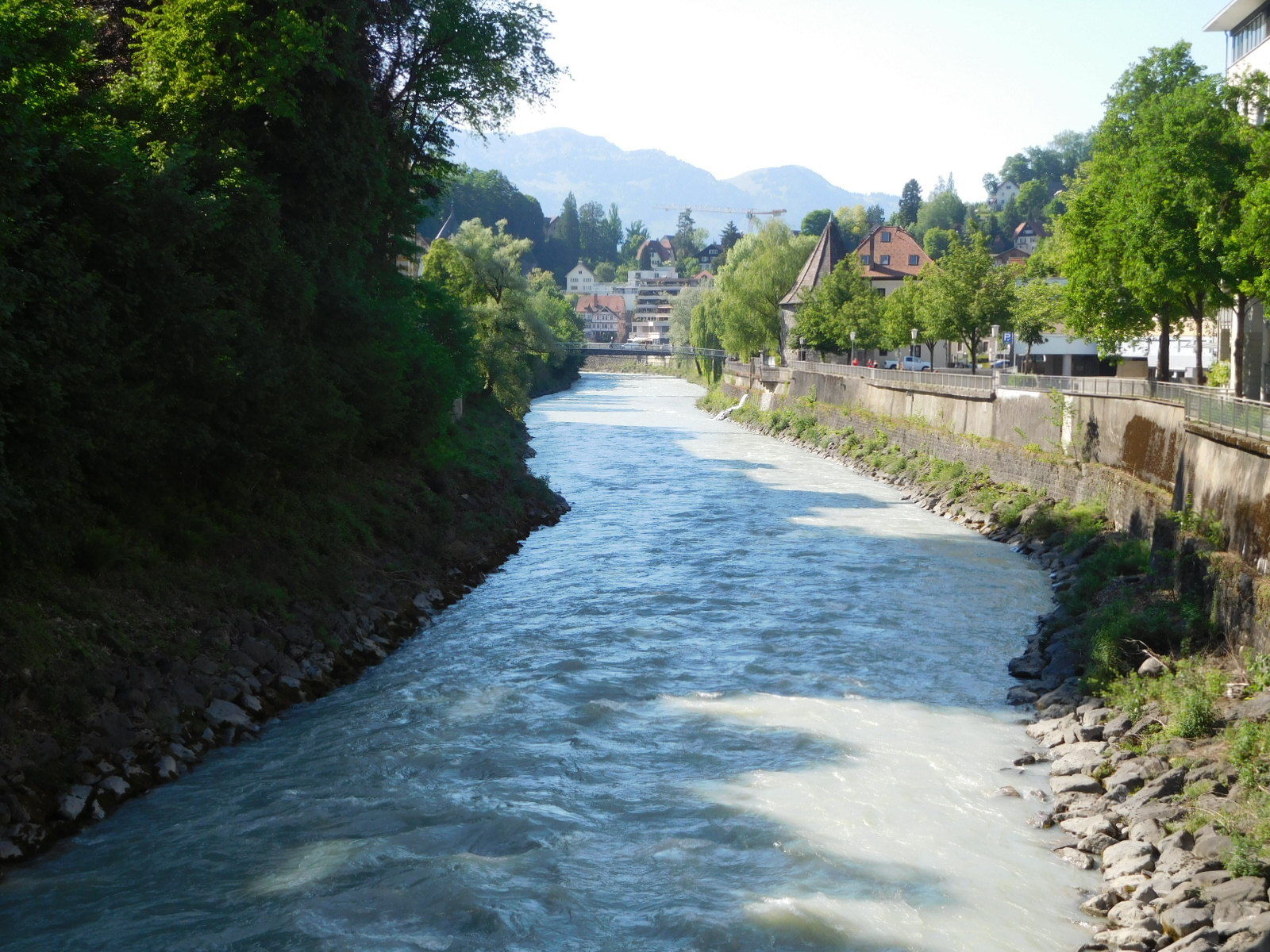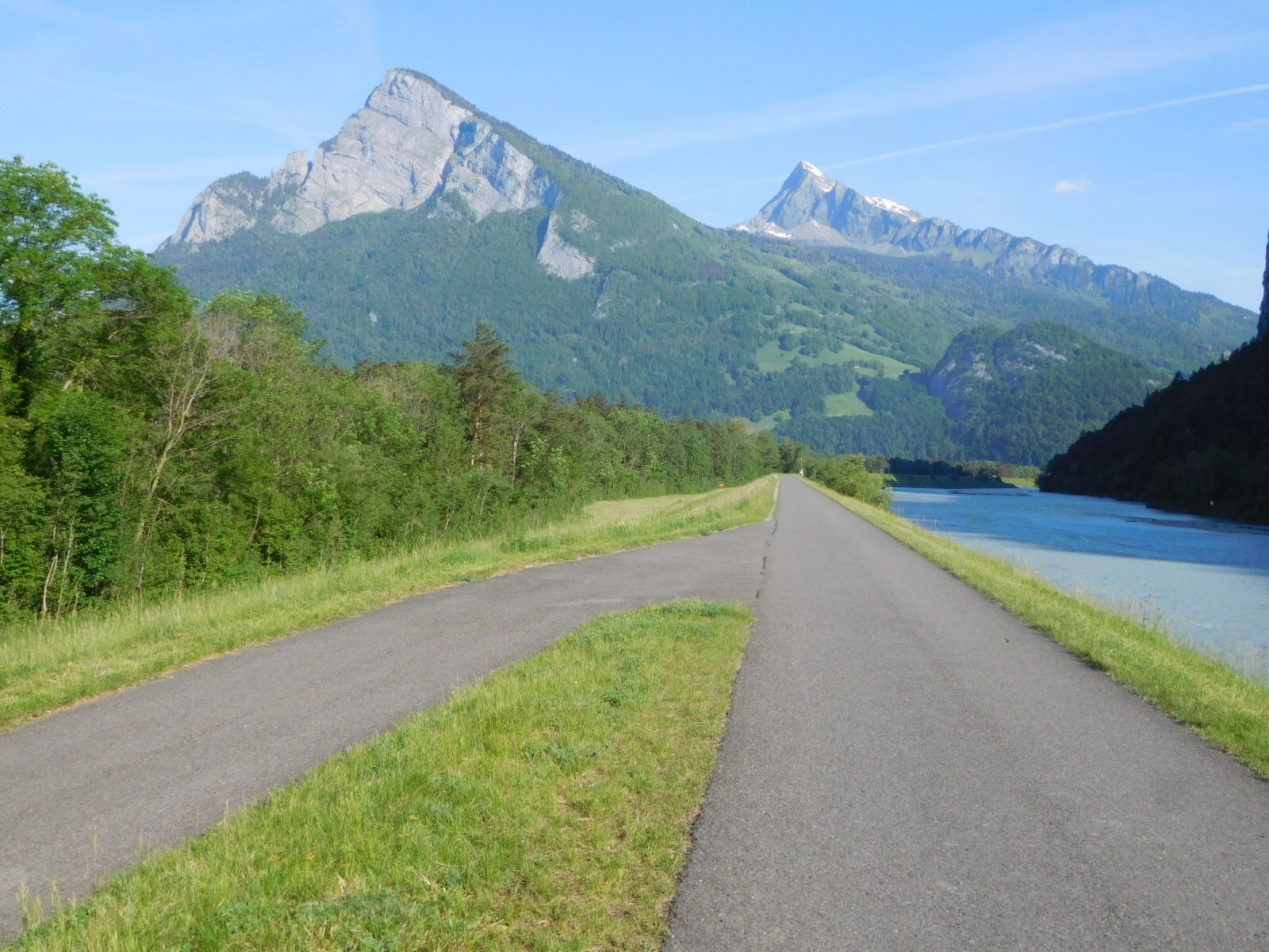 It was just enough harassment to have us instinctively just head for the river to grab some peace and quiet. In so doing, we caught the north end of Bad Ragaz, but that was pretty plain. When I commented that we were missing seeing the 1000 euro per night Bad Ragaz hotel, there was no enthusiasm to go looking for it.