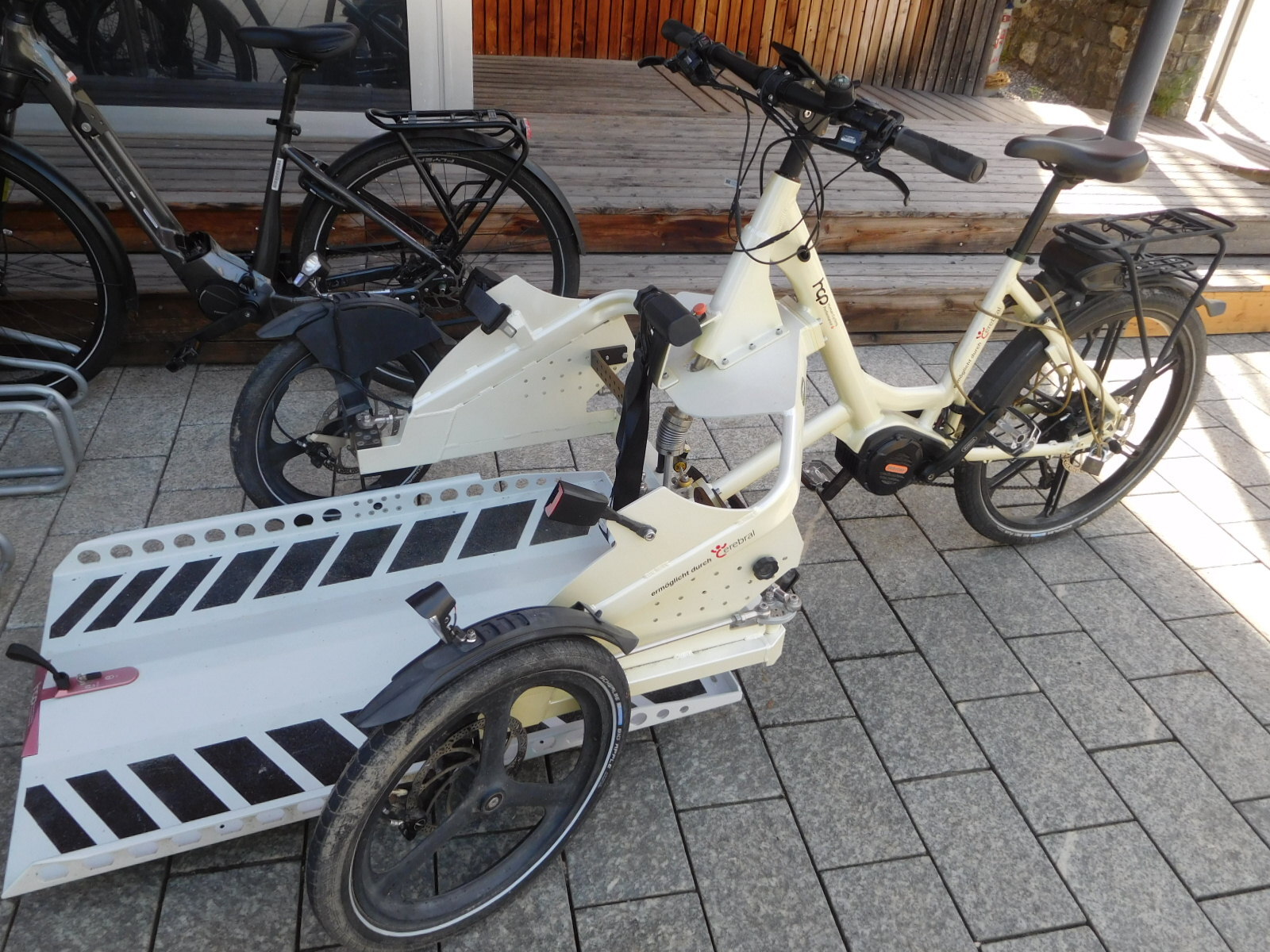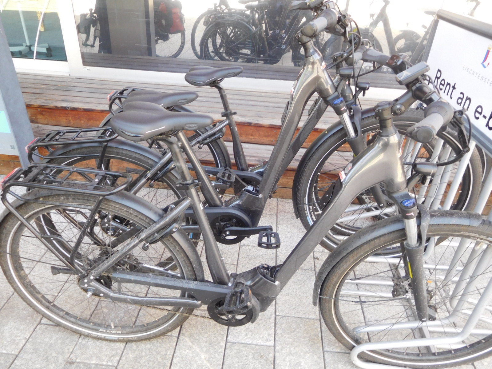The parliament building is modernistic, and ok, I guess. Just beside it is the tourist information. At that point they have bikes for rent, and naturally these are all ebikes. Further, they are the Swiss brand, Flyer. They looked really good. Also good was an ebike that could carry a wheelchair.