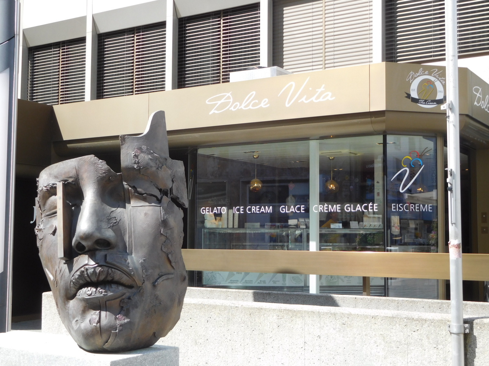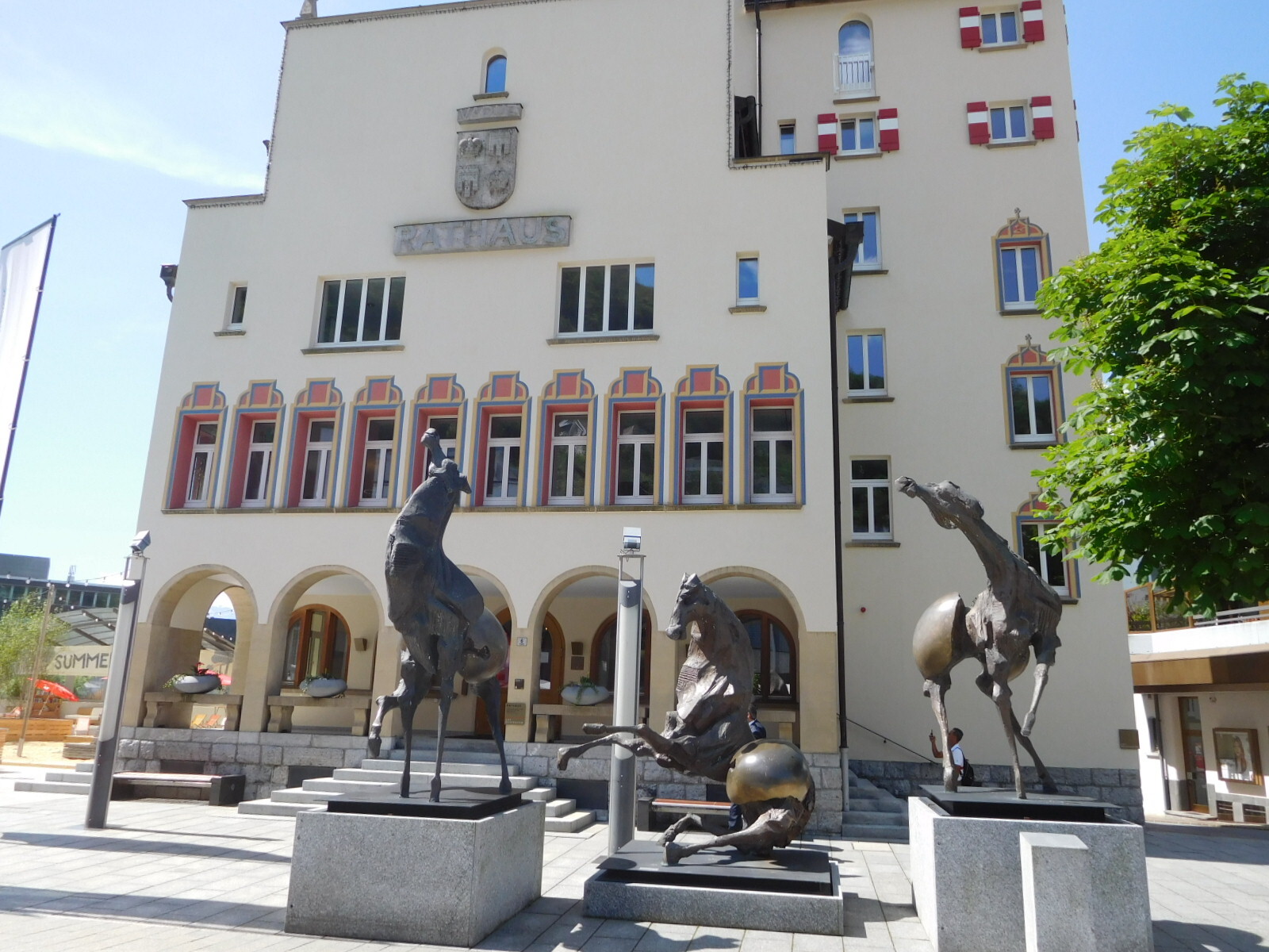 Quite quickly, which figures for such a small country as Liechstenstein, we passed from the outskirts of Vaduz to downtown, which began with the parliament building. The country is also ruled by a "Prince" and "Princess", I guess. The ones in the pictured statue are not the current incumbents. The current guy is 54 years old. The term "furst" means prince, but there is no "king"?