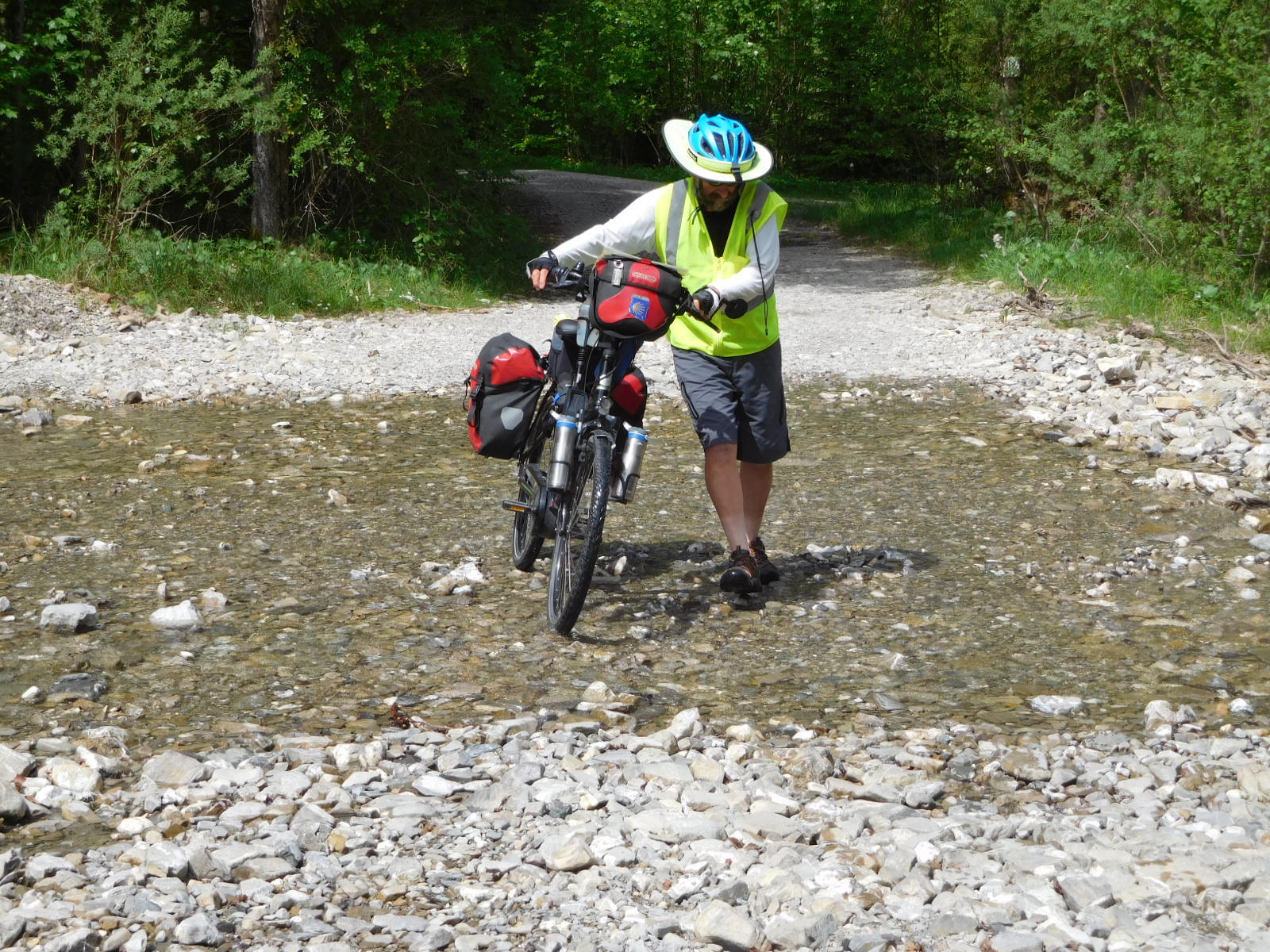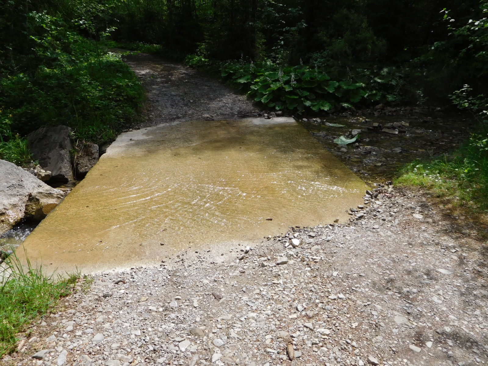 Just after the turn off for the Wieskirche the road turned to gravel for quite a few km. It was quite rough, and hilly, but it also had another trick - running water. I took off my socks for the crossing, the second time the socks had come off in the day, because I had also had another go at that Kneipp site.