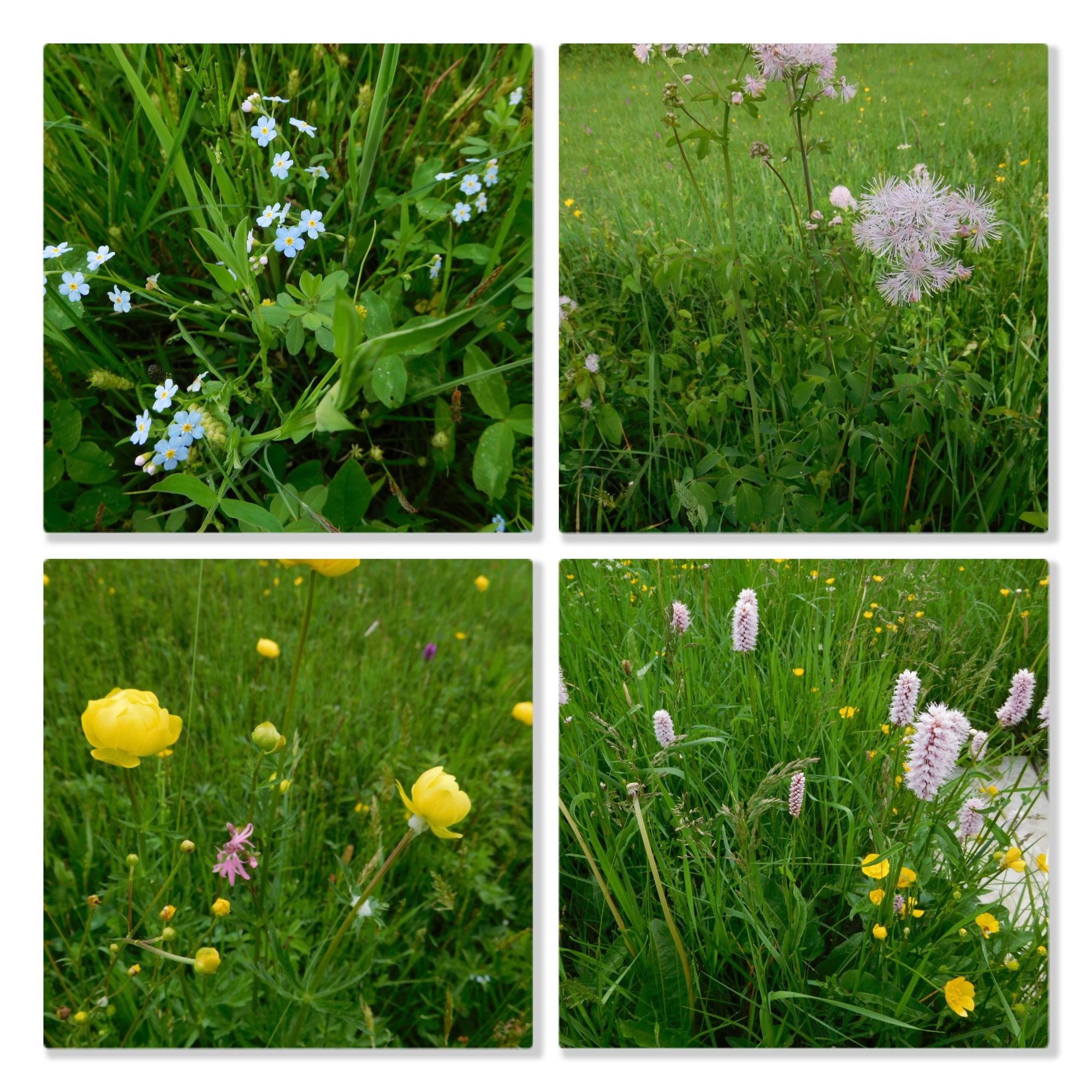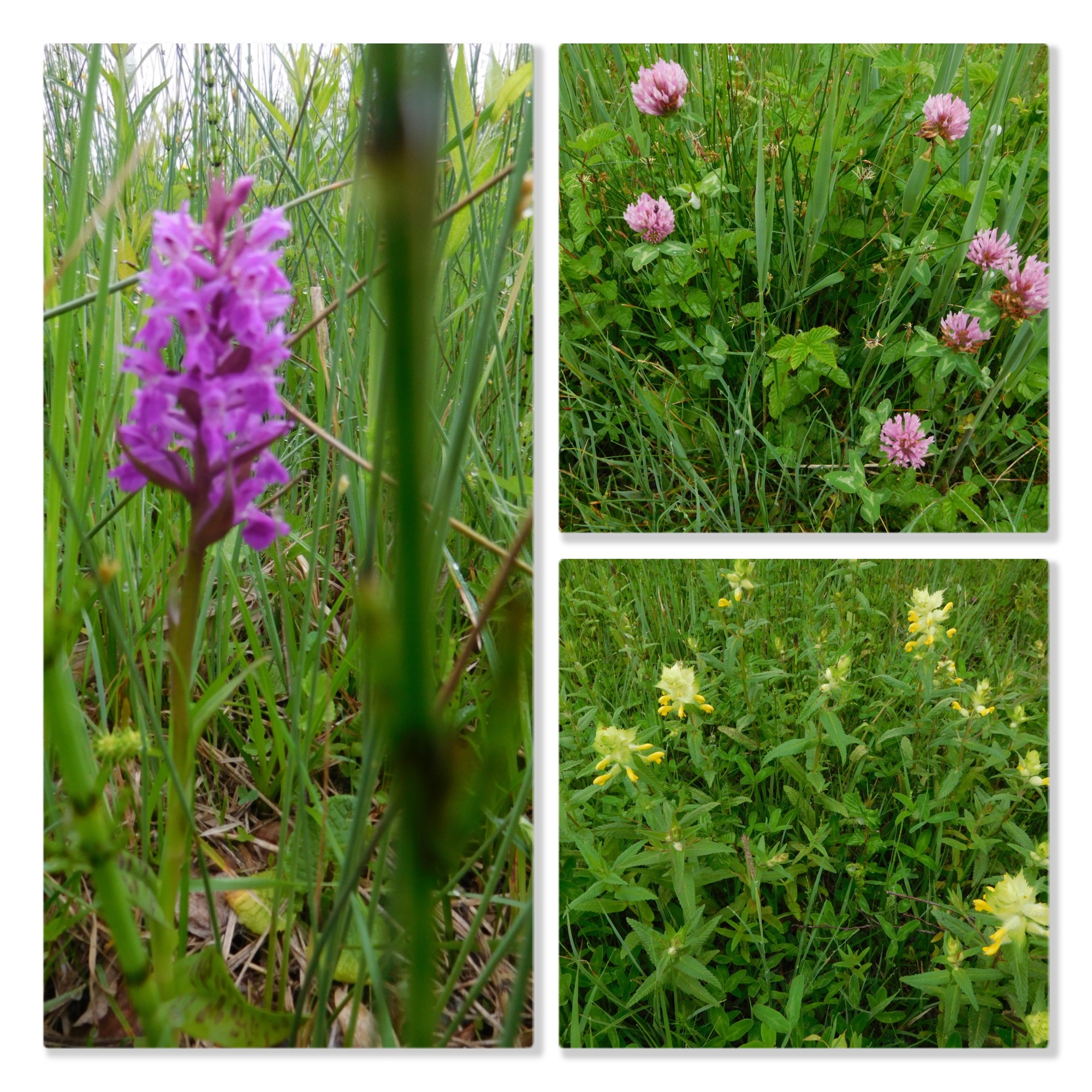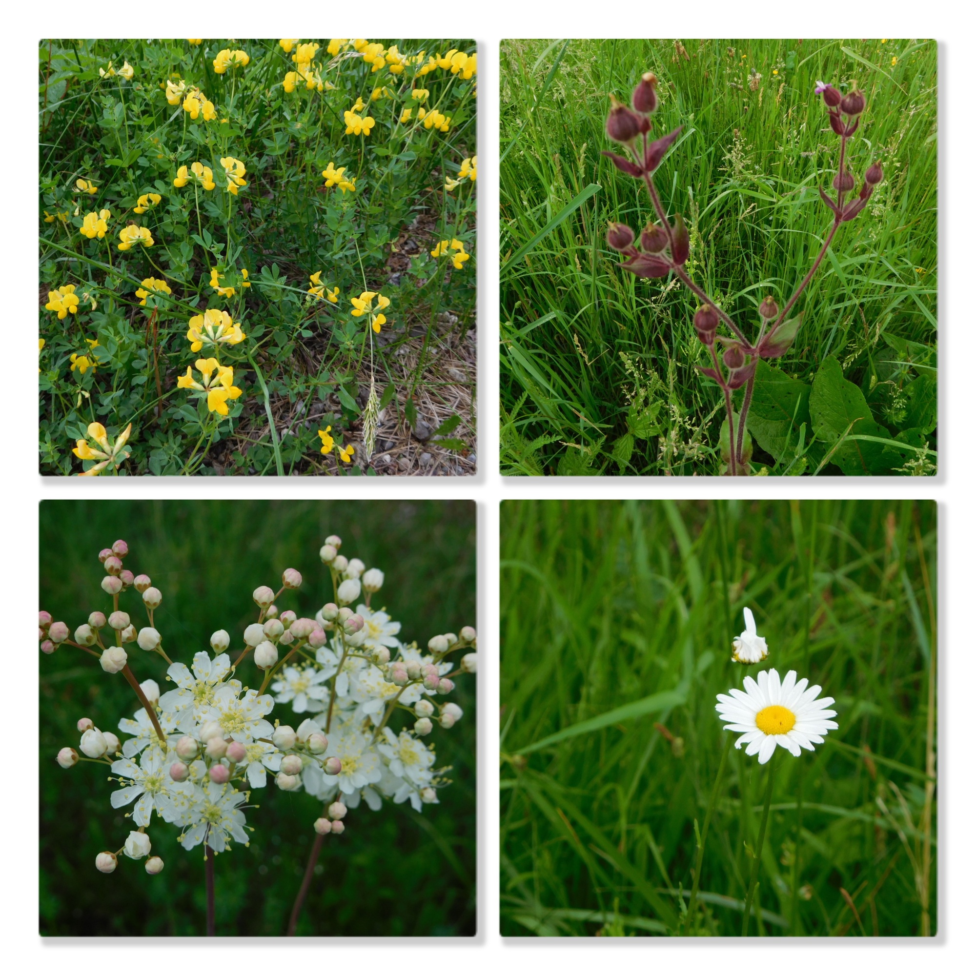 As we had cycled along, we spotted at least 30 meadow flower kinds. Looking at specific flowers is a different experience from taking in the whole meadow. Both are inspiring in their separate ways. Here are some of the specific flowers we spotted. (Unfortunately for a certain number our focussing was not good enough, and there are also duplicates in these collages, but we think this gives the idea of all the different flowers!)