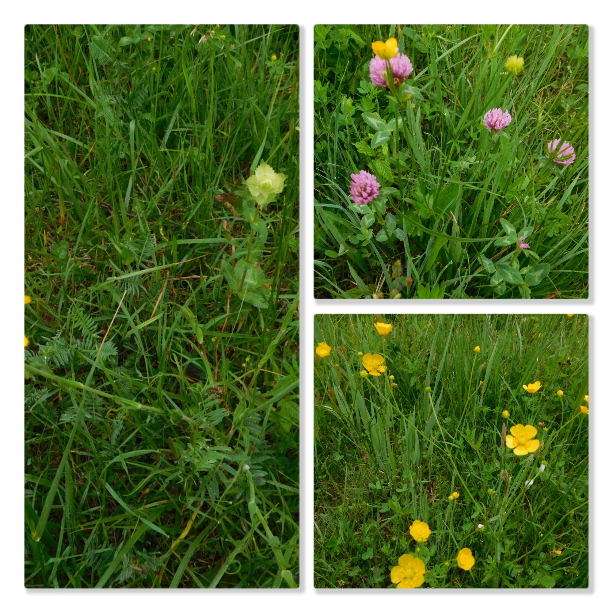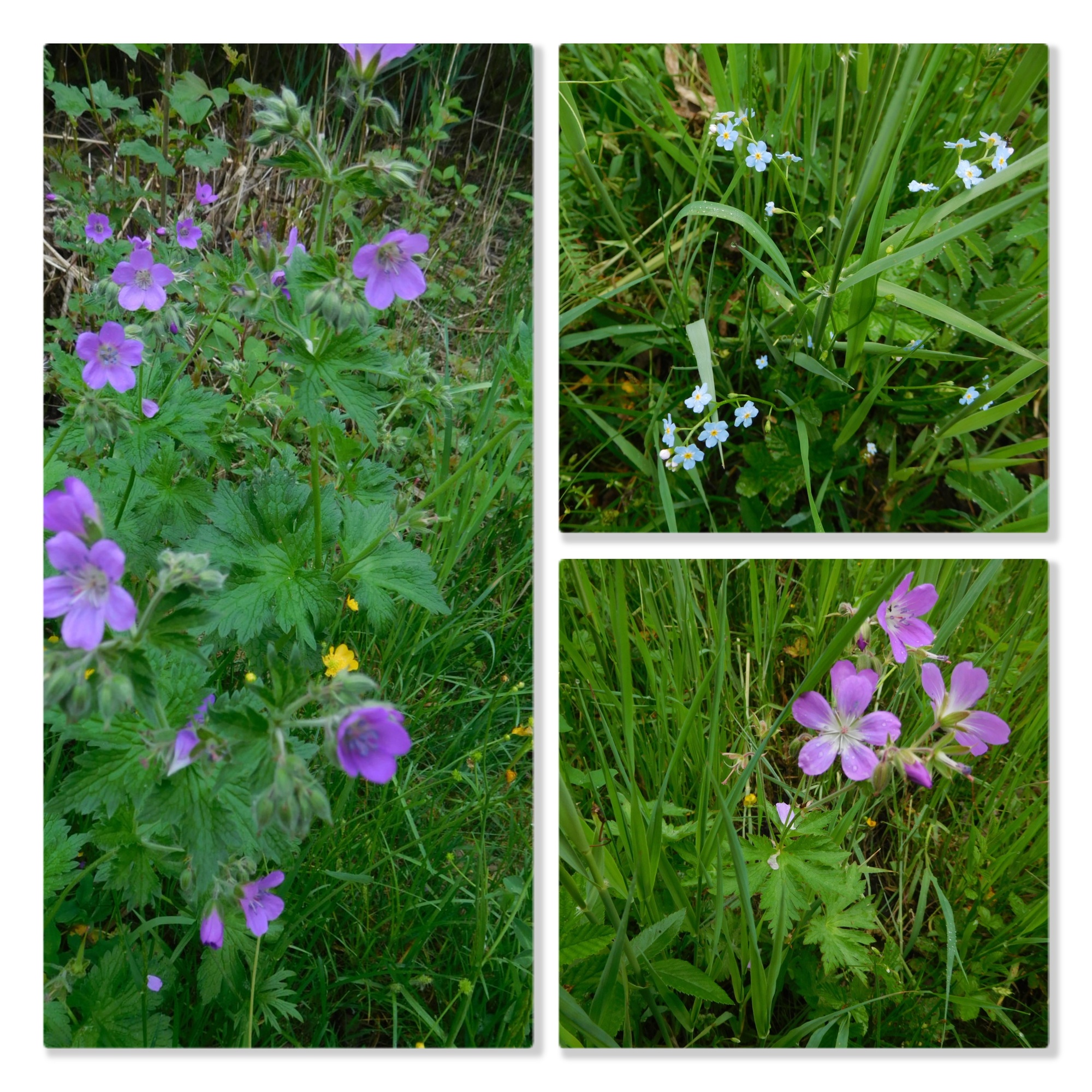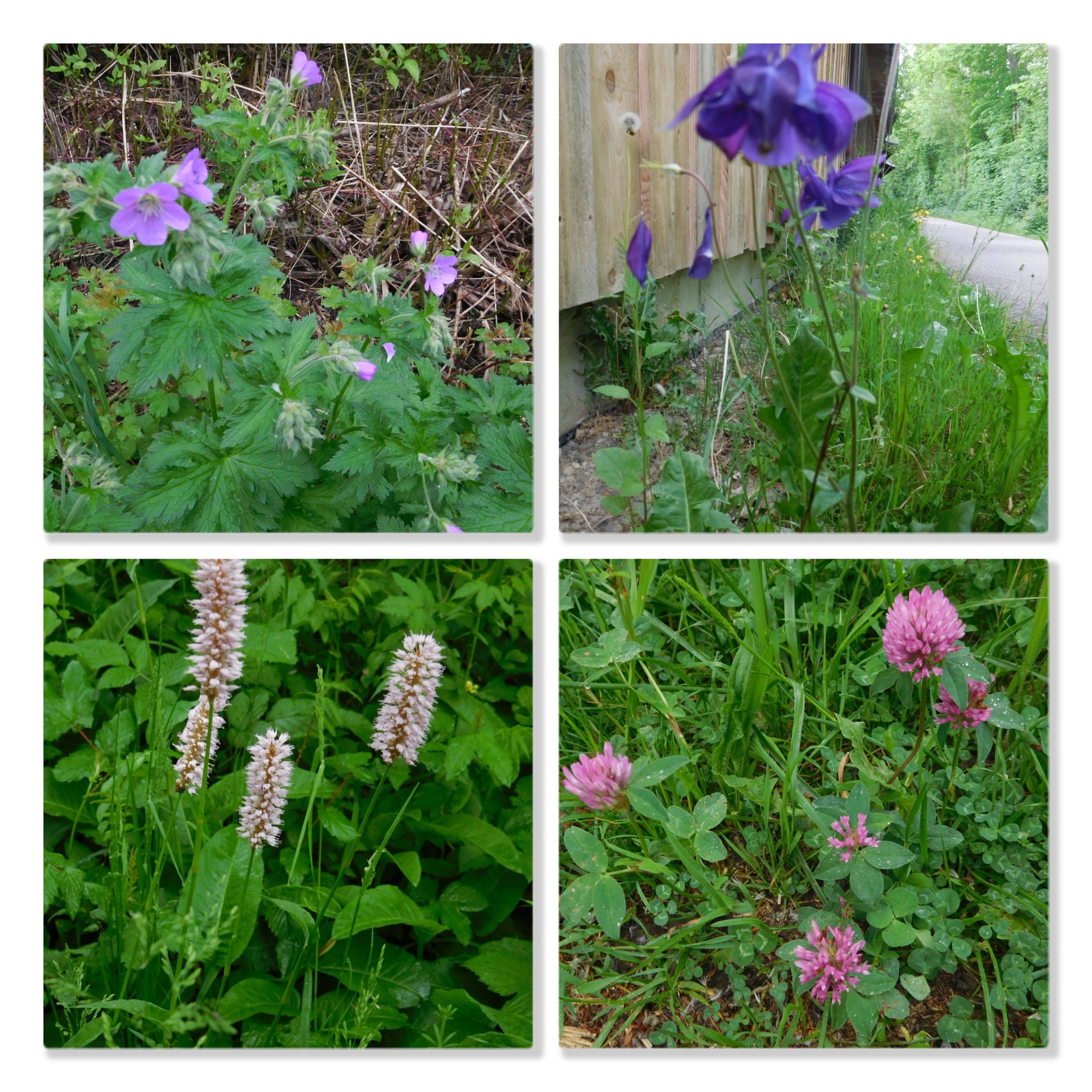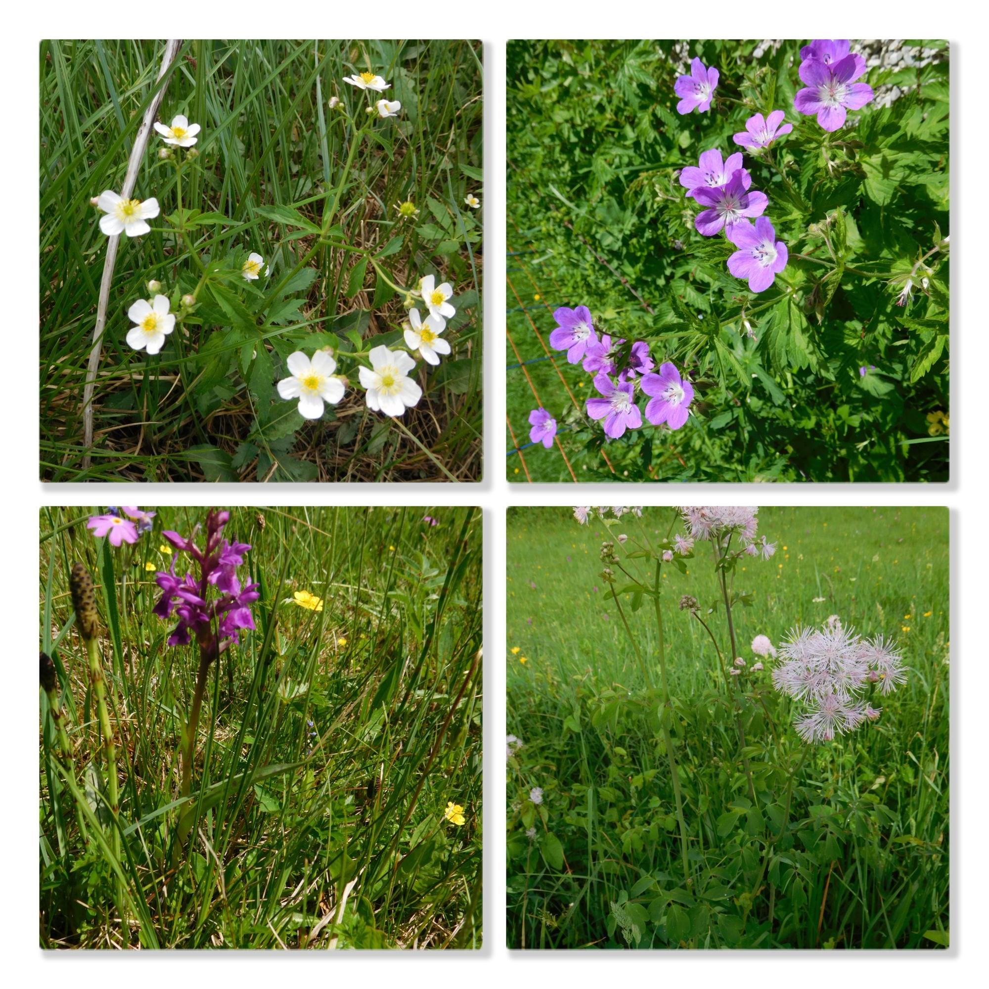 As we had cycled along, we spotted at least 30 meadow flower kinds. Looking at specific flowers is a different experience from taking in the whole meadow. Both are inspiring in their separate ways. Here are some of the specific flowers we spotted. (Unfortunately for a certain number our focussing was not good enough, and there are also duplicates in these collages, but we think this gives the idea of all the different flowers!)