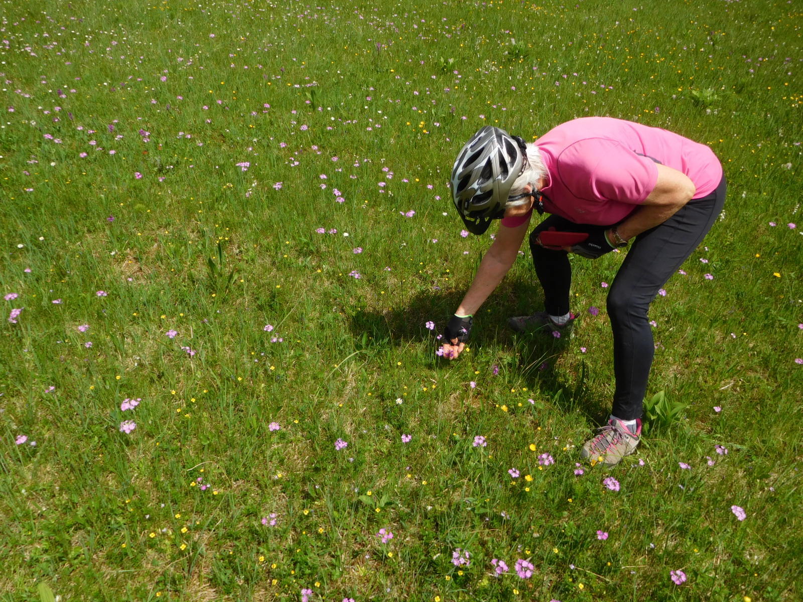With one couple the conversation was a little different. The lady was out in the meadow looking at a flower. She seemed to know a bit about the meadow flora, and she explained that this meadow was especially spongy, being in fact a peat bog. This was my cue to show her the photos I had taken this day, because we had been trying to document the different types of flowers that make up the meadows, which are such a notable feature here.