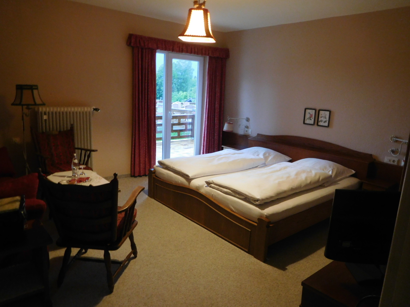 For this hotel we had broken our hearts and paid 160 euros, but the room is huge with a large balcony, and the place is very atmospheric. We have been peering out at the mountains and the rain and feeling glad that we are here (inside!).