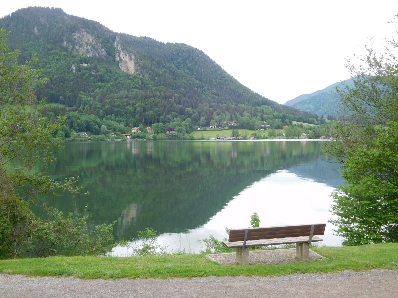 Gmund is at the north end of a large lake called the Tegernsee. It looks like a great vacation spot, but the spirit of Gmund did not seem to recognize this position. The next lake along is called the Schliersee, and it has a town of that name, also at its north end. We did not get to see or assess this, because we hung a right and headed down to the south end. There, our guest house is called the Maria Theresia. It's another large but family run affair, and again we are in a dead quiet, large room. Outside our window is a not huge but still pointy mountain. We think this is a big ski area, but also the lake has great beaches that would be swell in a little warmer weather.