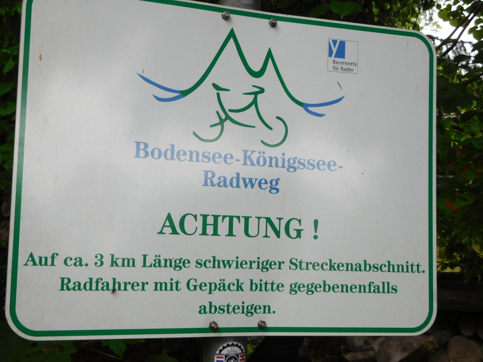 We had a little trouble leaving town, because the bicycle and radweg direction signs did not quite agree with the track in our GPS. Dodie decided to trust the GPS, and it did work out. As we worked our way along, Dodie pointed out that though we will be back in this town (in about three weeks), we would not be passing this way again. That's because we were leaving on the Bodensee-Konigsee radweg, but will return on the Venedig-Munchen. One is west-east and the other is south-north. They cross at Bad Tolz.