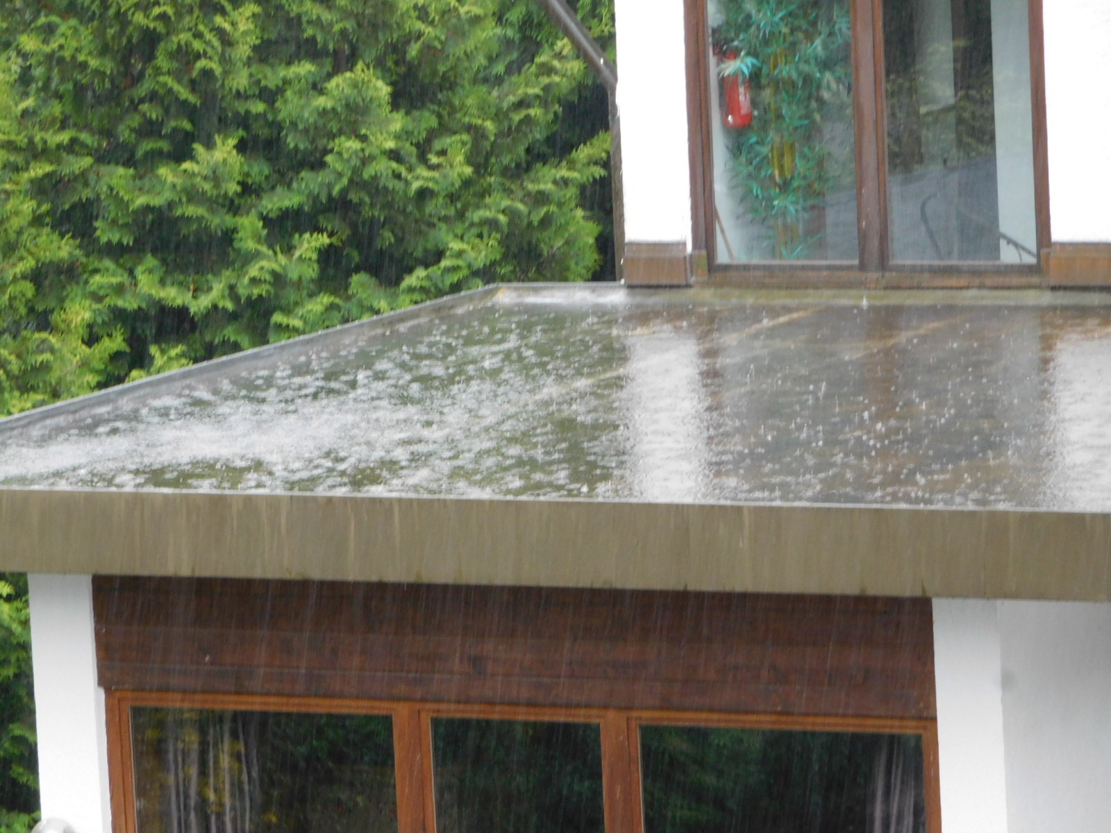 Our room was large and consequently had a lot of windows. So this morning when we peered out to see what the weather was like we were each looking in a different direction. I determined that it was pouring rain, and here is my evidence: