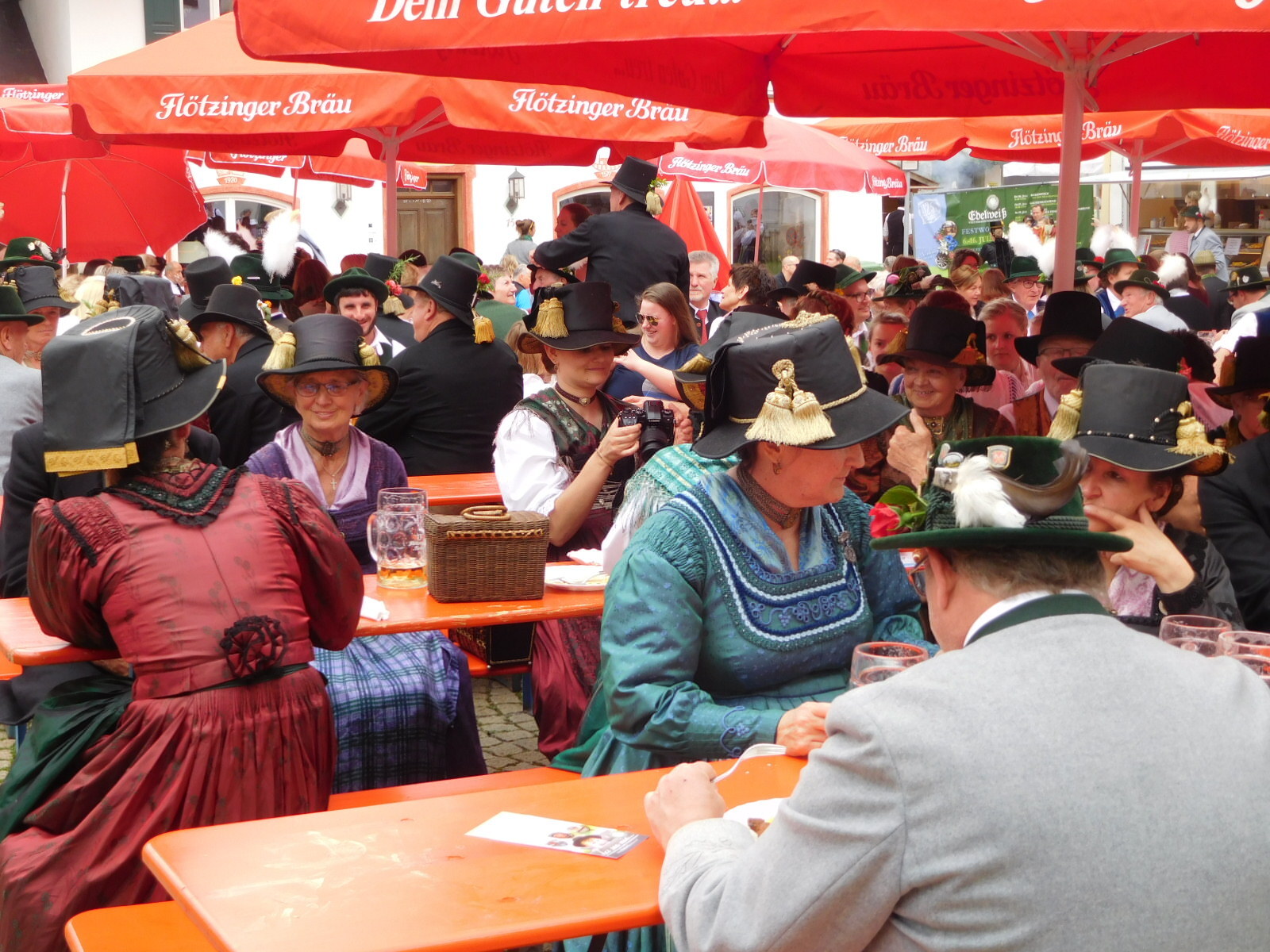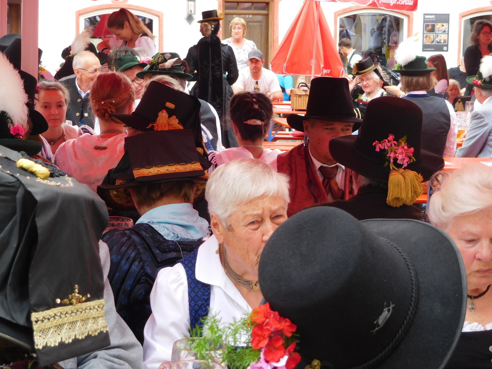 The best thing was that we happened into the middle of yet another town celebration. A band was playing and everyone was wearing their traditional best. I would guess that the styles, the hats in particular, are specific to this region, or maybe town, or maybe the group putting on the party. Does anyone know?