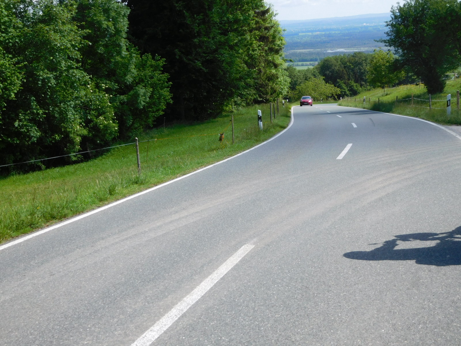 We had somewhat underestimated the total kms needed to reach our destination today, and so were open to possible shortcuts. This usually means going on road and bypassing some of the radweg twiddles. Of course the twiddles may be there for a reason, like keeping off a dubious road. We came to one such decision point, and actually discussed it with other cyclists looking at the same issue. We all decided to go for the road.