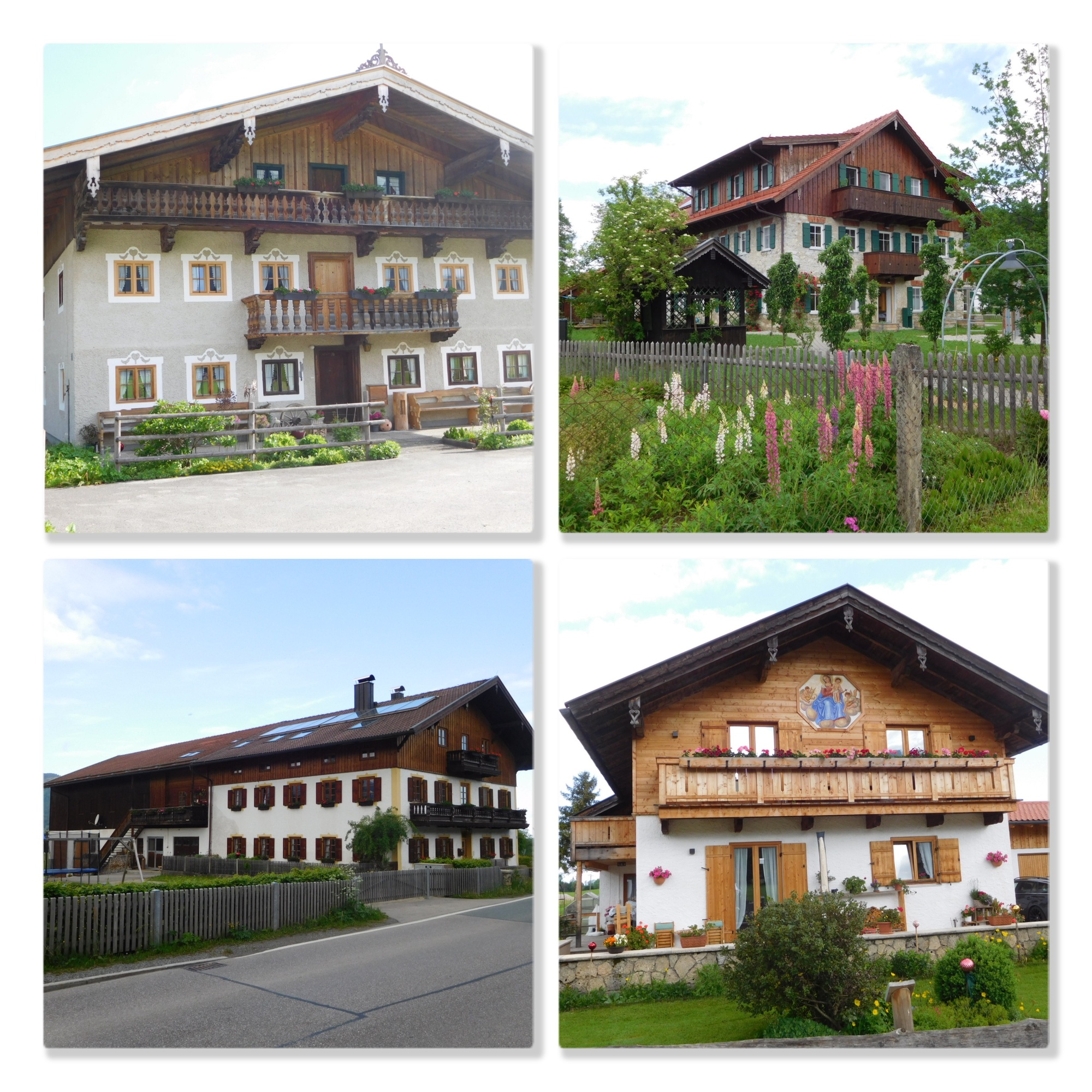 We are now truly and deeply into Bavaria, and we can see it easily in the buildings. There are still many of the huge ones, with house on one end and barn on the other, but there are more of ones that could better be called chalets - still generally huge, but not humongous, with balconies and flower filled window boxes.