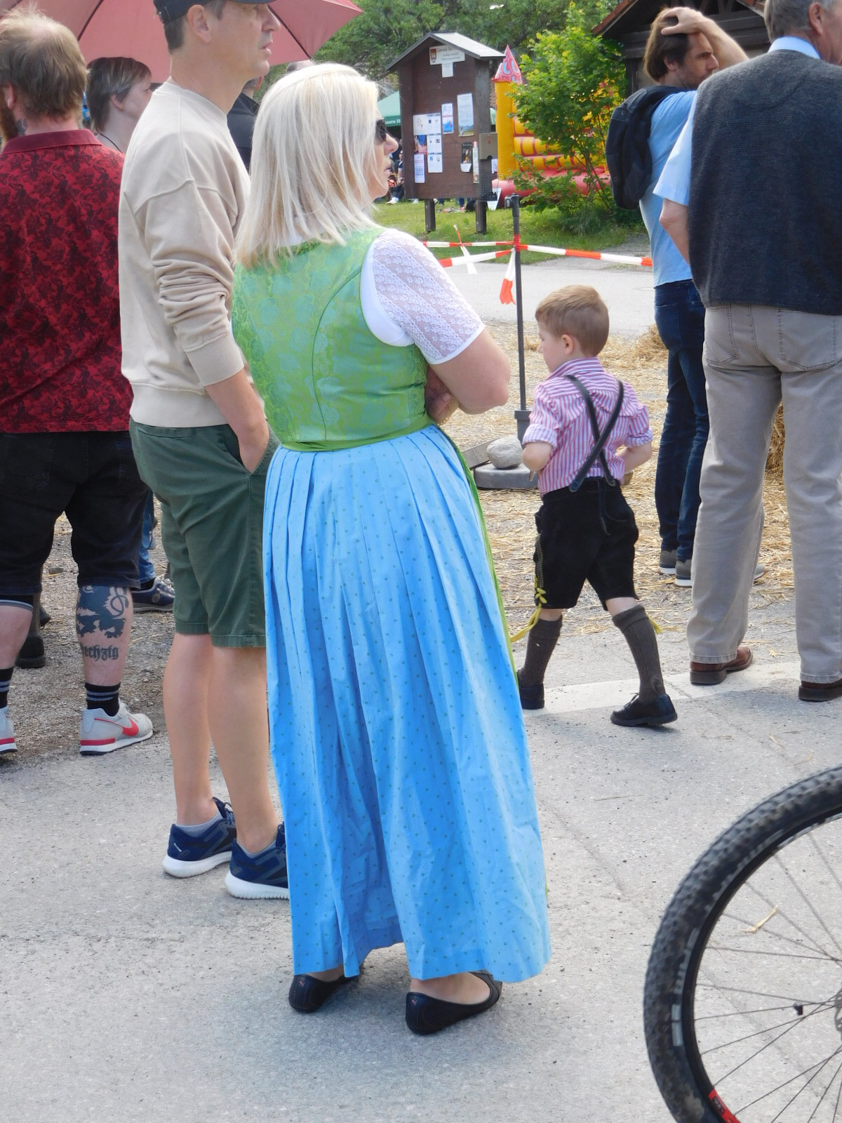 Among the townsfolk were some in traditional dress. We have seen this enough to surmise that the dress does not have to be the focus of a festivity, it's just what people wear when they put on their not work clothes.