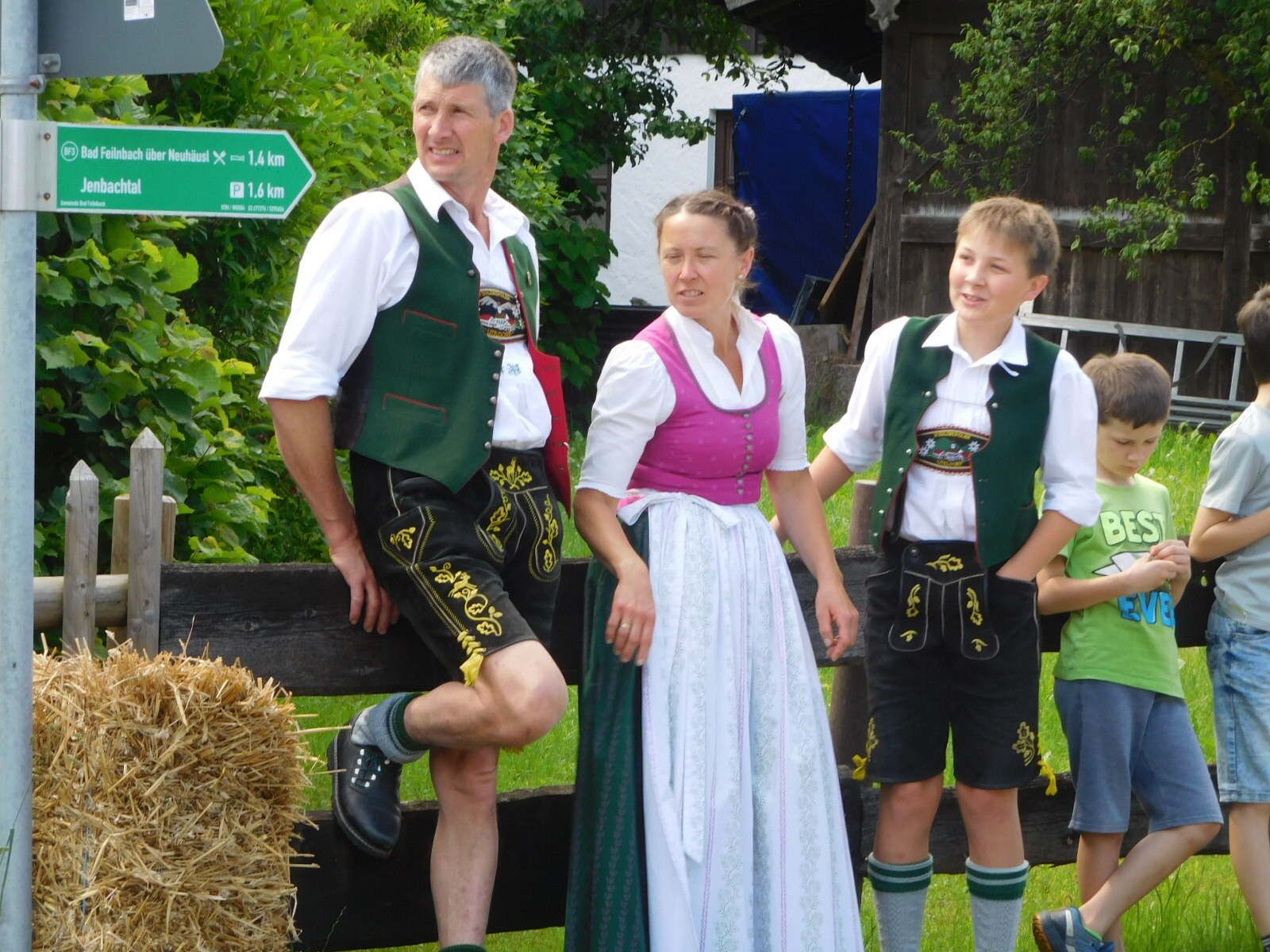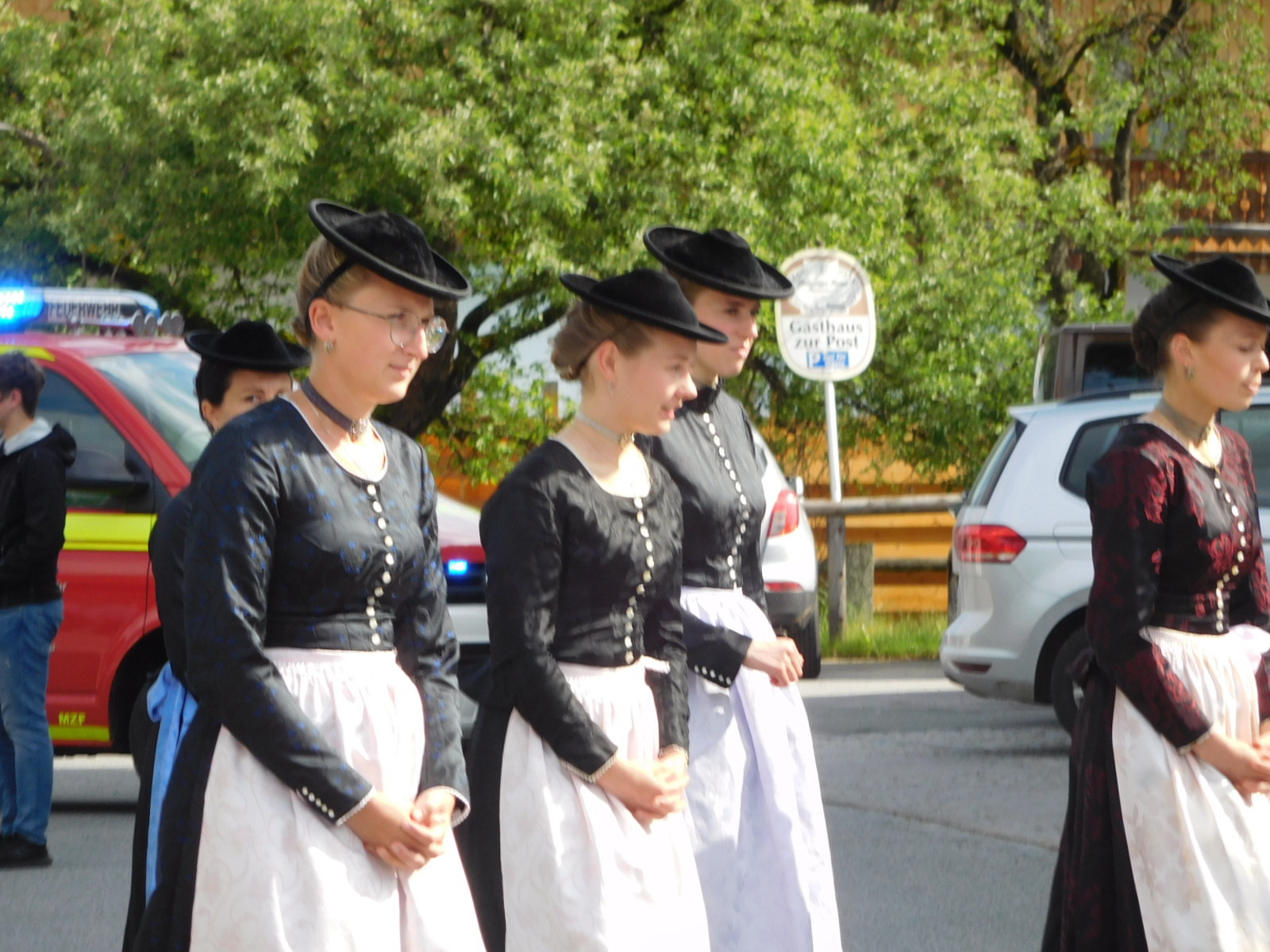 One of the joys of cycling in the mountains is that church bells sound so great, when ringing in distant valleys. We were listening to one such bell ringing, but after a while we began to wonder about just how exuberant the bells were, and why they were going on and on. We did this wondering for at least twenty minutes, until we finally arrived in the town. There we found traffic backed up for kms on the roads leading to the town centre, and from the exuberant church was issuing a stream of marchers, again in unique traditional dress. The parade (or whatever) was almost over, so I whipped out my camera and filmed a bit. I was on my bike and kind of pressed, but the photos and video do give the idea.
