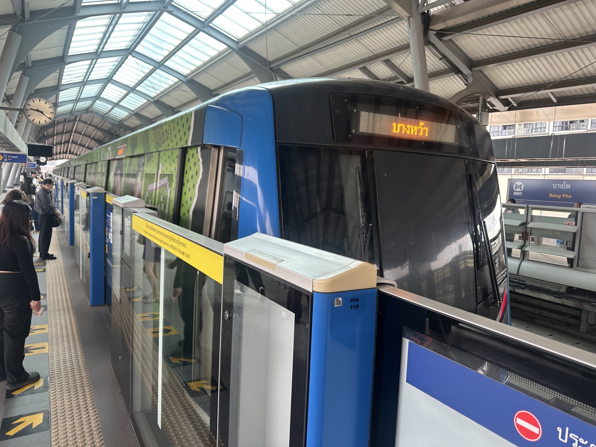 First, our plan was to escape Bangkok in a few days by taking the train south to Hua Hin, thereby avoiding the chaos of Bangkok traffic. And our wander yesterday confirmed to us this was a good idea — streets were absolutely bonkers, and there was no way we could subject ourselves to that over dozens of km in 30+ degree heat. So we needed train tickets, as well as a firm understanding of putting bikes on the train. Our information gleaned from the interwebs was that the train did have a cargo car where bikes could be put on (without boxing or bagging). It was however too difficult to figure out details from the train web site, so we figured we’d just go to the train station and sort things out and maybe get tickets in advance.