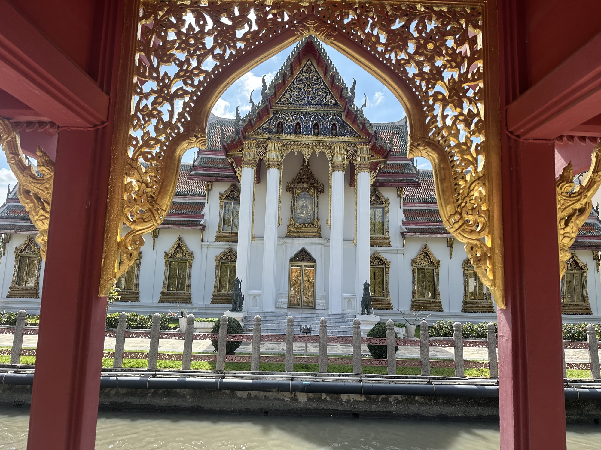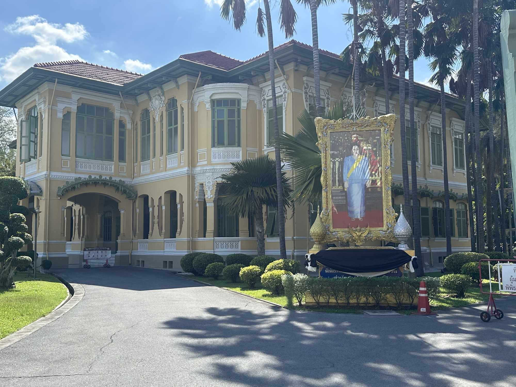 We decided to walk back to the guesthouse, which was mostly a hot sunny trudge along busy streets, but there were points of interest, including a wat that we visited to give our legs a rest, a royal residence we were not permitted to visit, and the very handsome Parutakasawan Palace, which I’ve misspelled. This was a residence given to a prince 100 years ago on completion of his studies. It currently houses the police museum, which we were not interested in, though we did admire the building.
